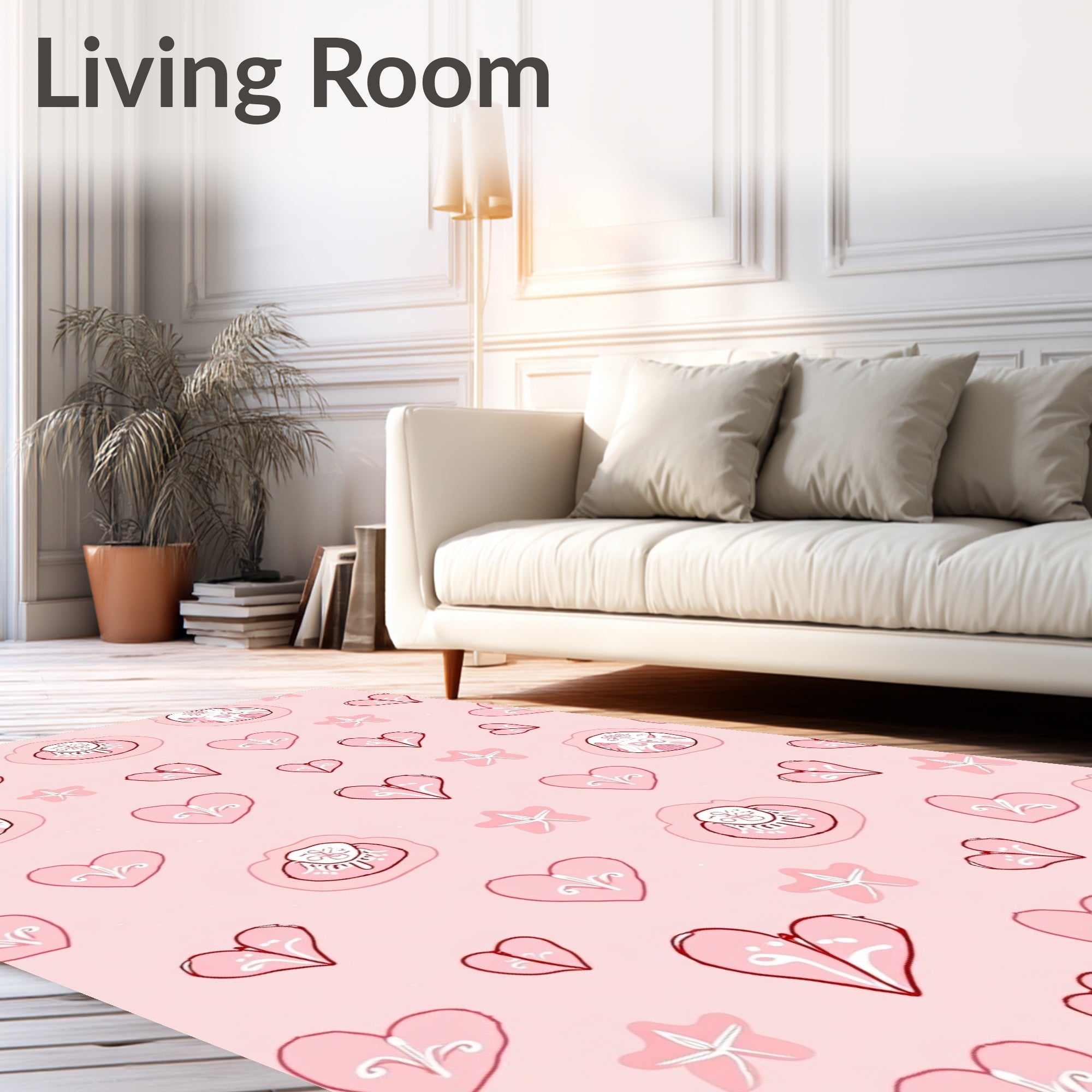Flatwoven High Traffic Area Rug, Doodle with Blush Charm, Non Slip, Stain Resistant, Washable Area Rugs for Living Room, Bedroom (Pink) Overview: