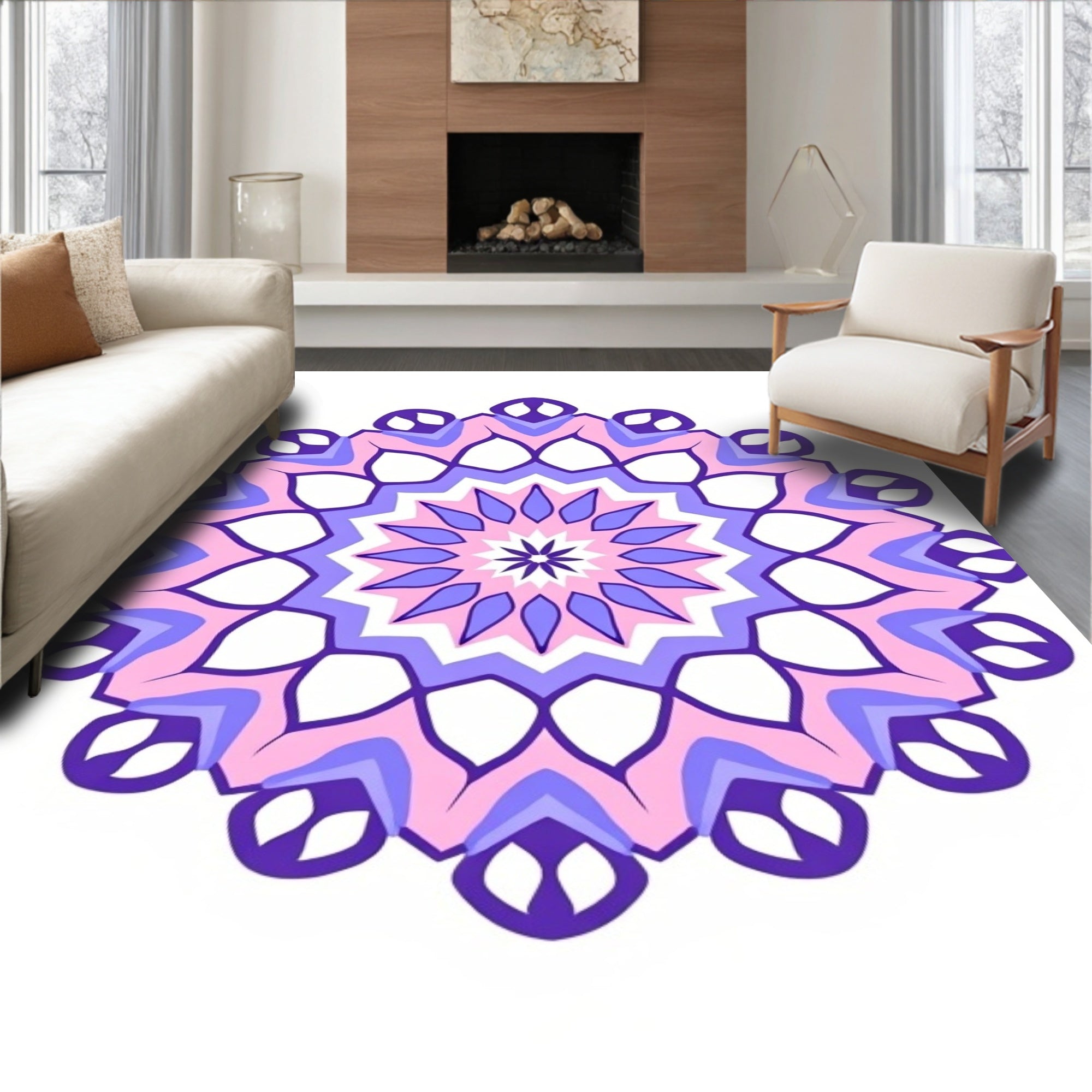 Flatwoven High Traffic Area Rug, Dreamscape Petal Medallion with Interlocking Motif, Non Slip, Stain Resistant, Washable Area Rugs for Living Room, Bedroom (Purple) Overview: