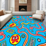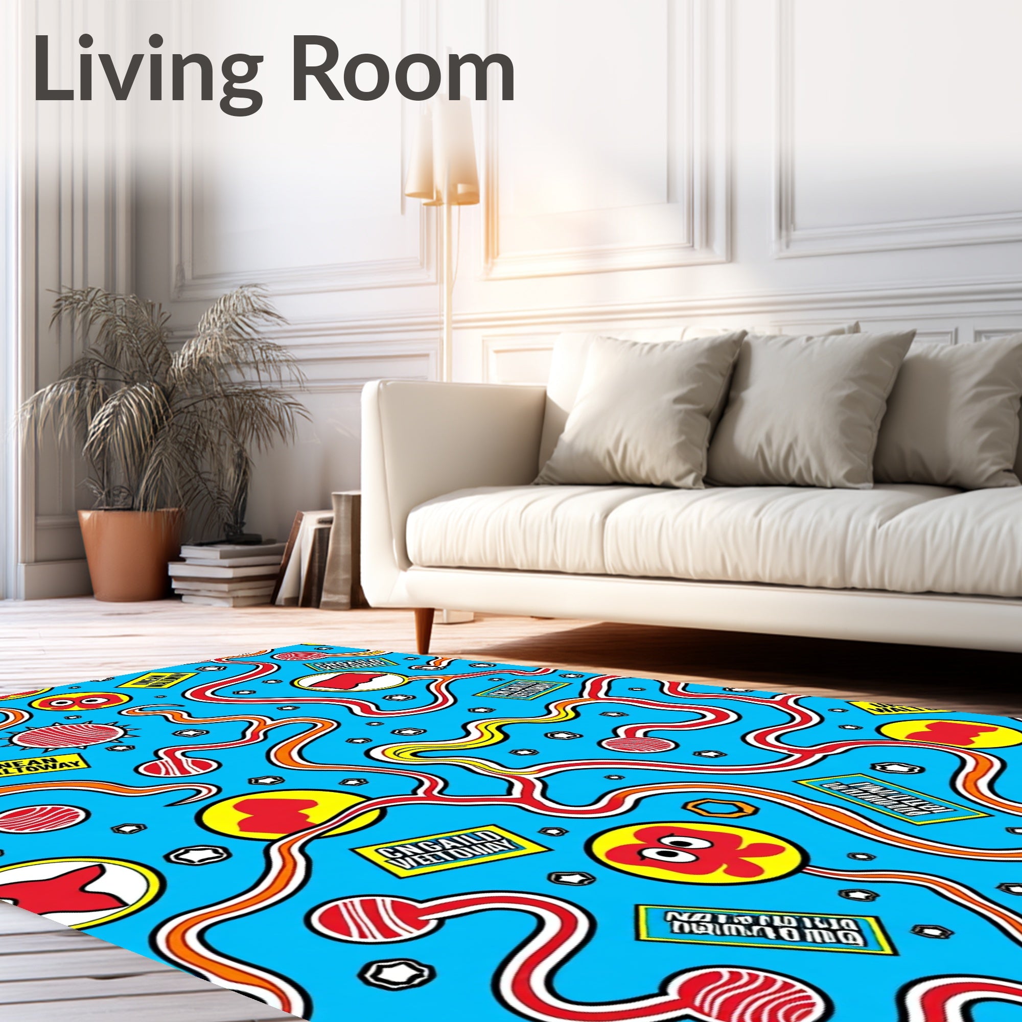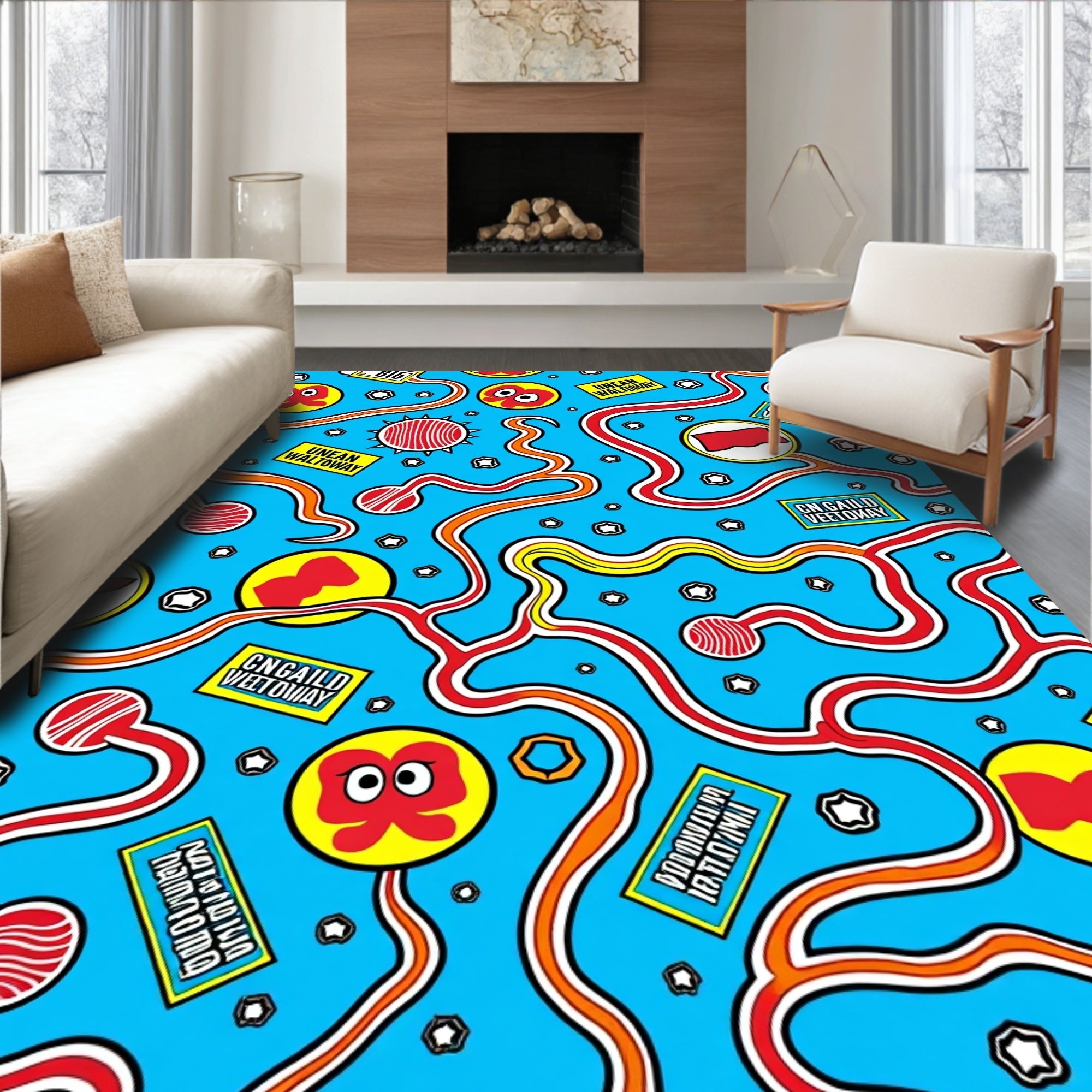 Flatwoven High Traffic Area Rug, Dynamic with Animated Tracks and Fun Road Signs Motif, Non Slip, Stain Resistant, Washable Area Rugs for Living Room, Bedroom (Blue) Overview: