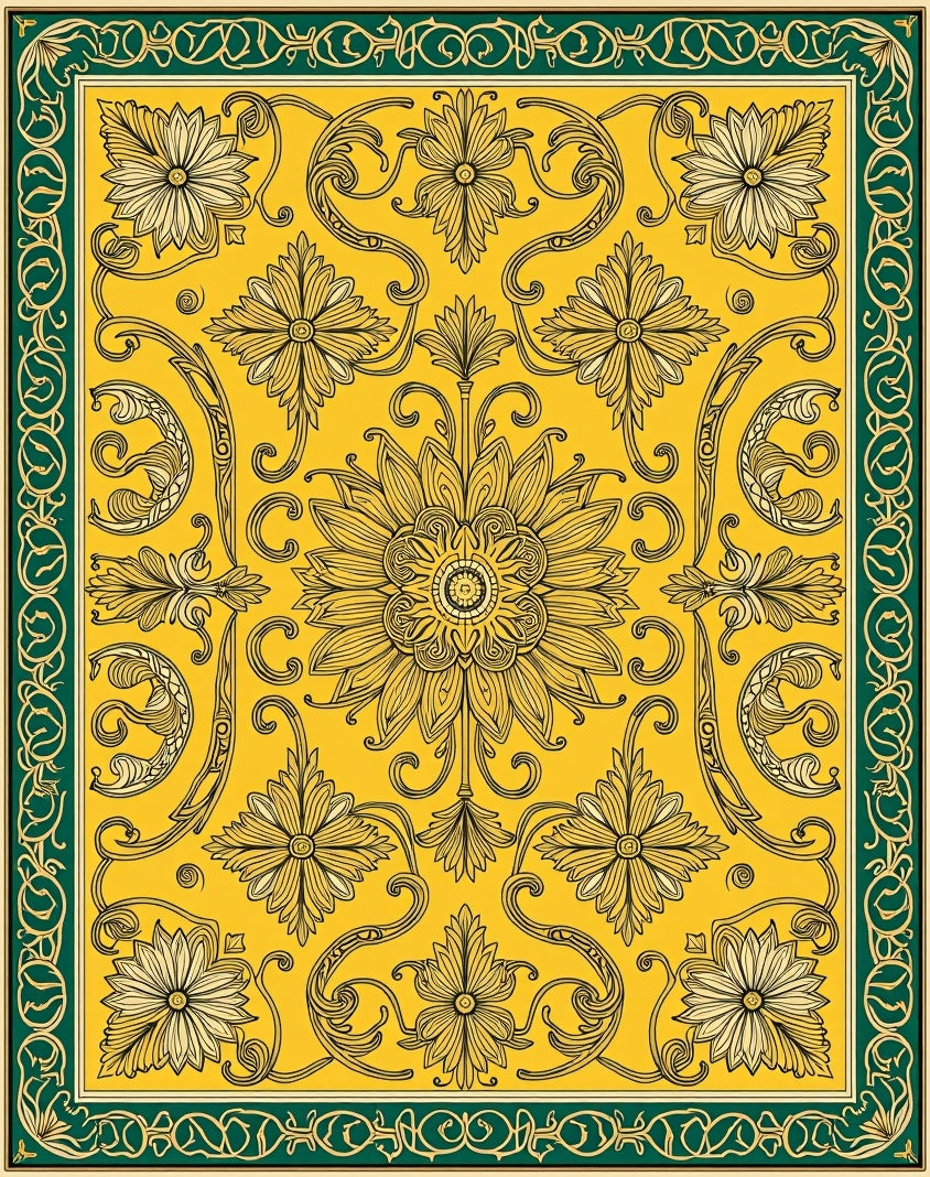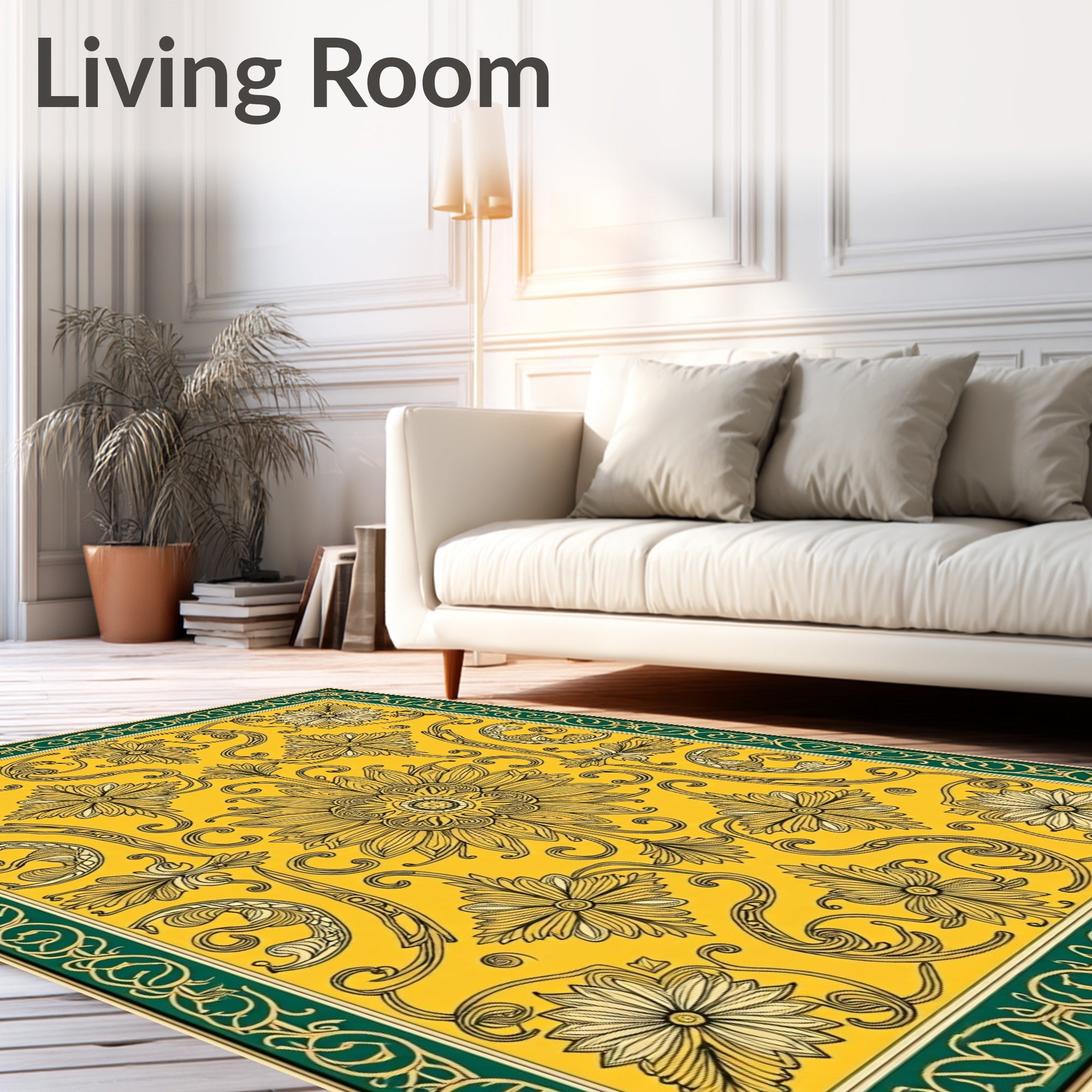 Flatwoven High Traffic Area Rug, Eclectic Damask Embellished Sophisticated Exquisite Jewel, Non Slip, Stain Resistant, Washable Area Rugs for Living Room, Bedroom (Yellow) Overview: