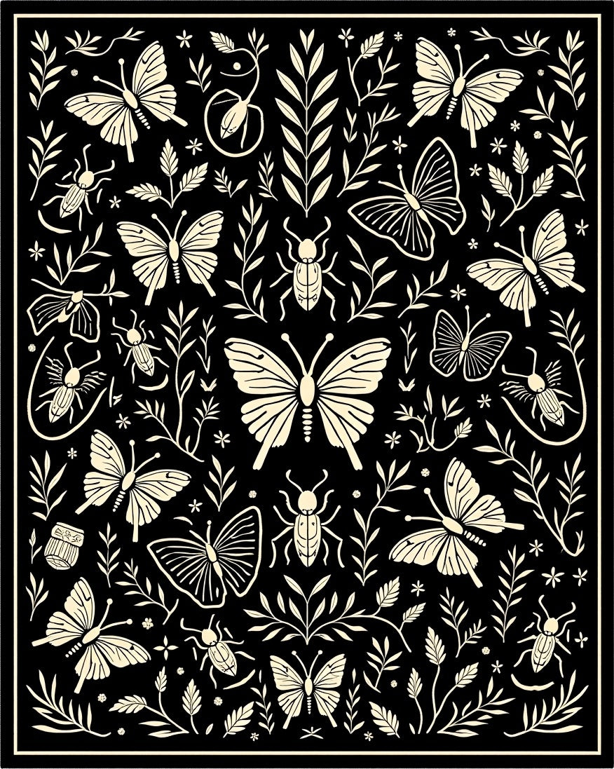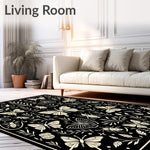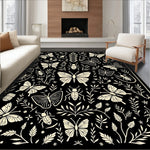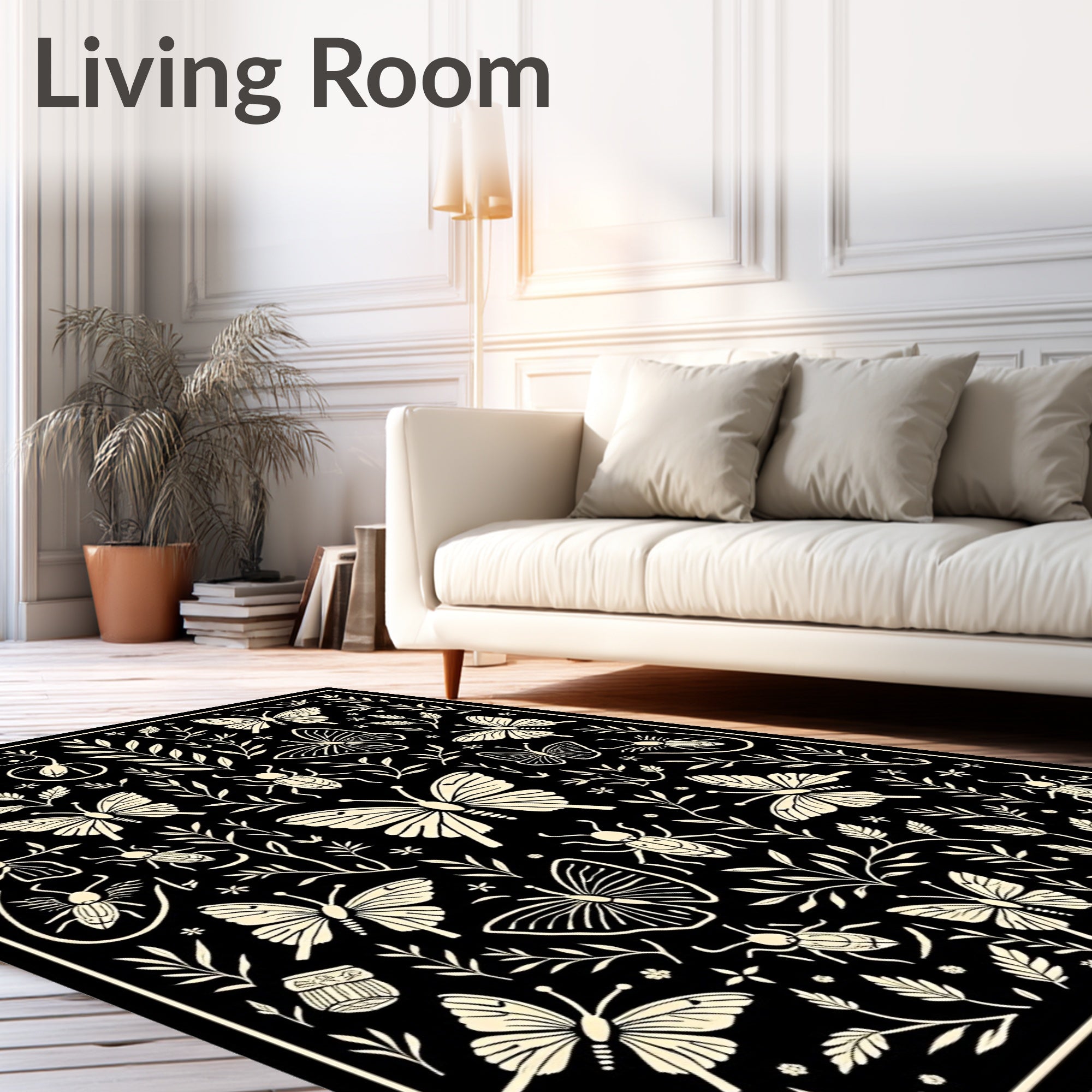 Flatwoven High Traffic Area Rug, Eclectic Entomology Specimen, Non Slip, Stain Resistant, Washable Area Rugs for Living Room, Bedroom (Black) Overview: