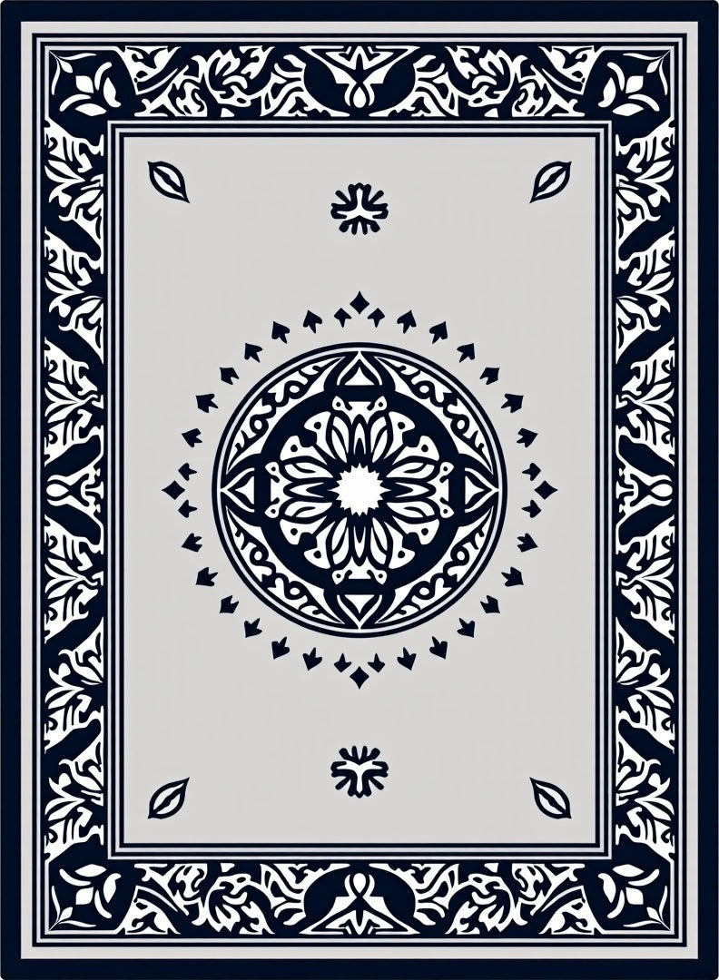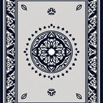 Elegant Bordered Medallion Interlocking Symmetrical Contemporary Motif (Gray)
