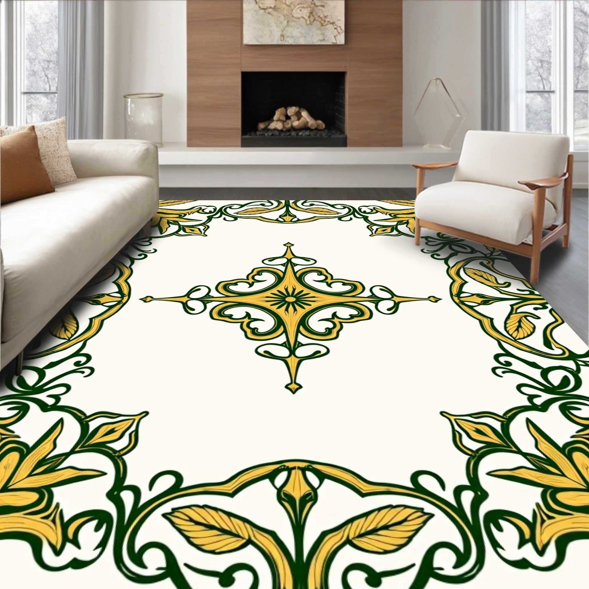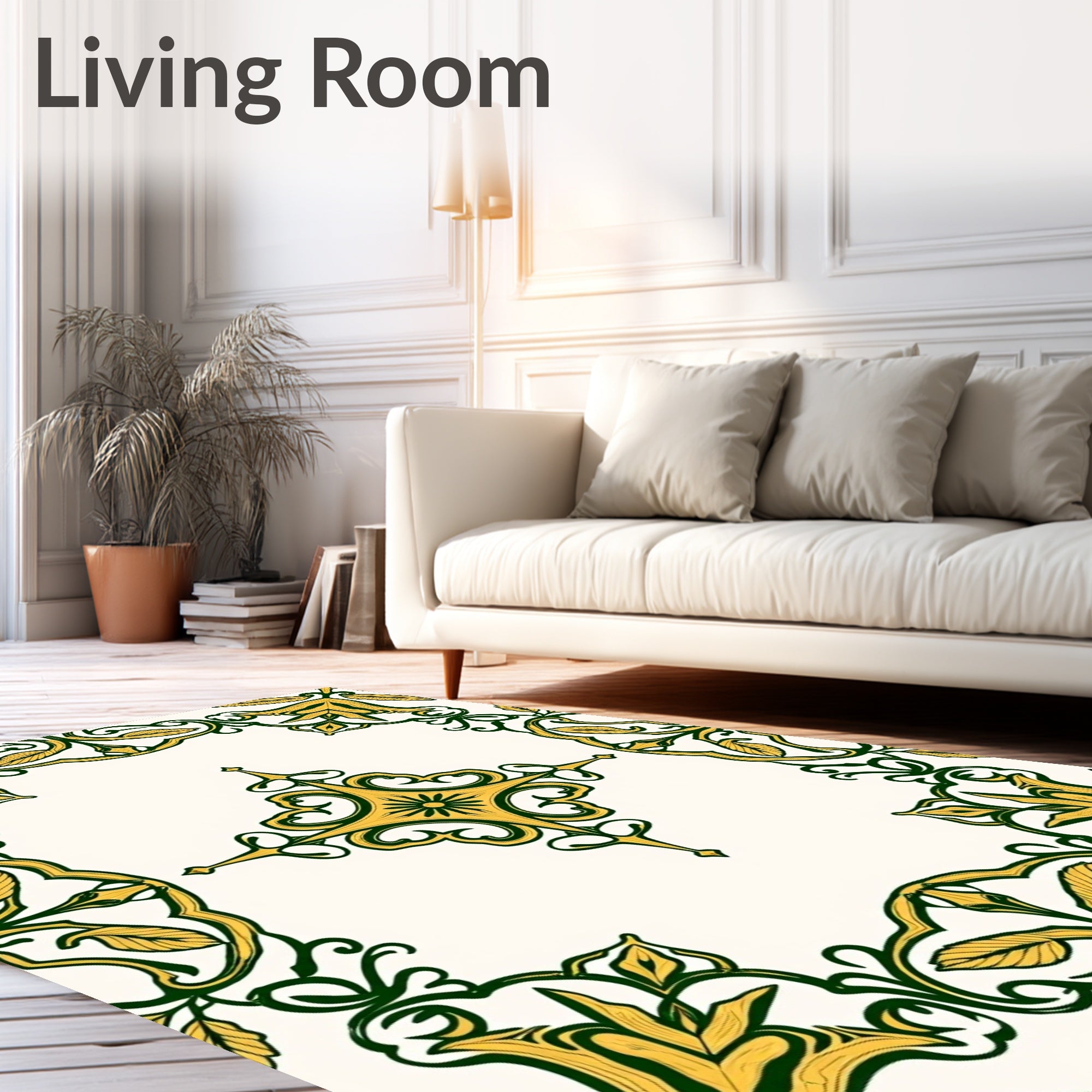 Flatwoven High Traffic Area Rug, Elegant Botanical Damask Luxury Sophisticated Decorative, Non Slip, Stain Resistant, Washable Area Rugs for Living Room, Bedroom (Yellow) Overview: