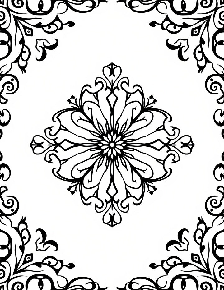 Elegant Botanical Vine Tapestry With Intricate Floral Medallion (Black)