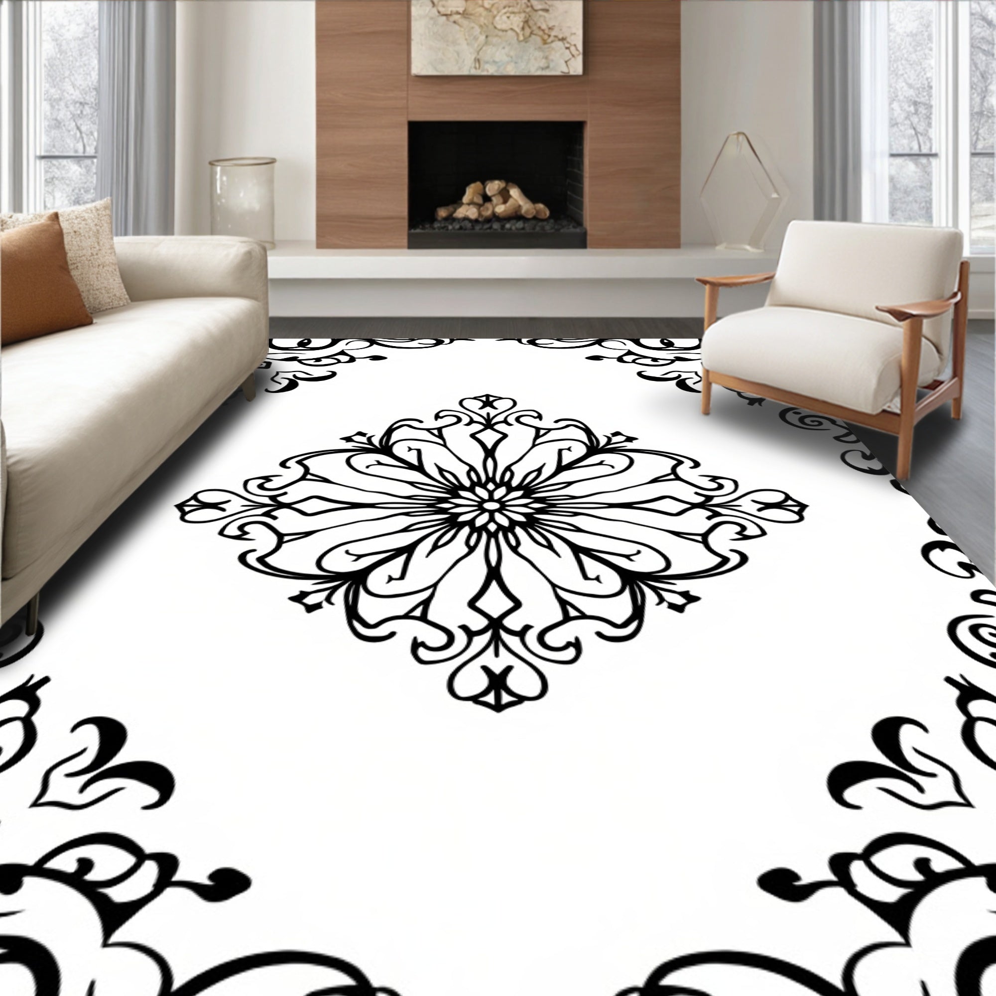 Flatwoven High Traffic Area Rug, Elegant Botanical Vine Tapestry With Intricate Floral Medallion, Non Slip, Stain Resistant, Washable Area Rugs for Living Room, Bedroom (Black) Overview:
