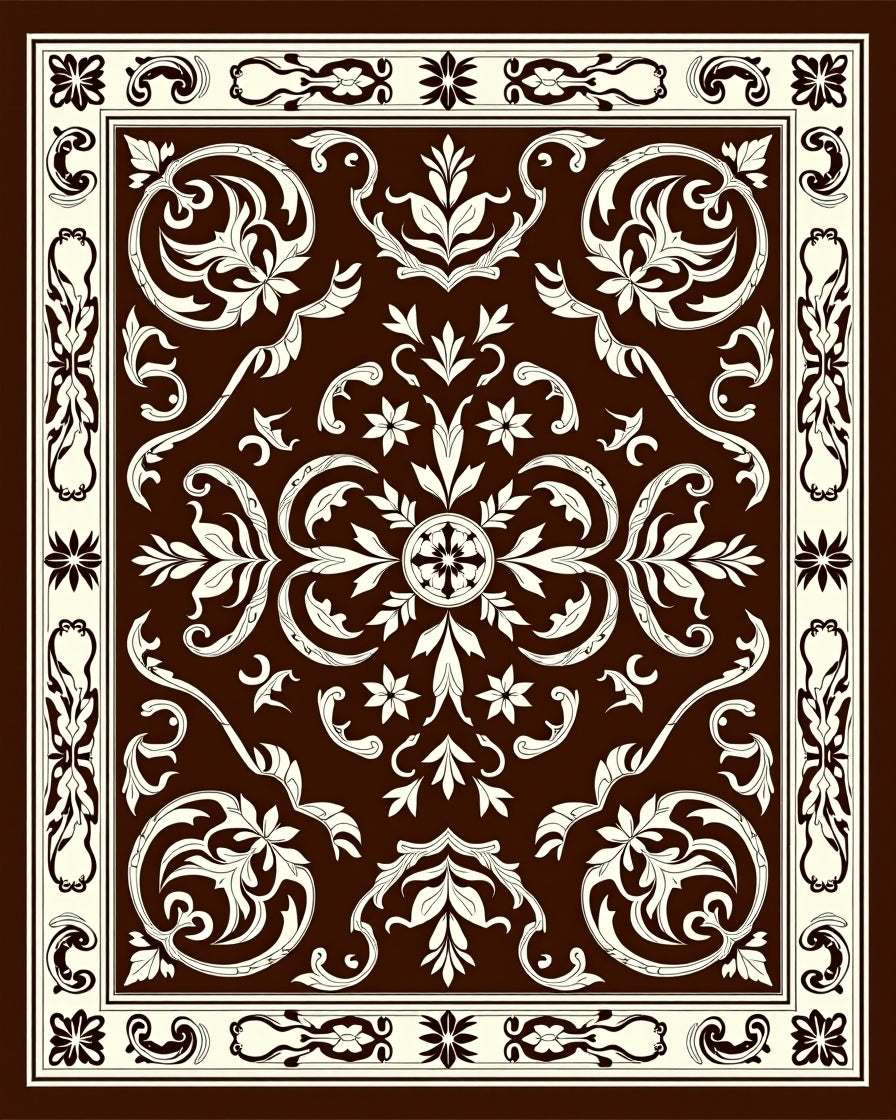 Elegant Damask Flourish with Stylized Leaf and Baroque Inspired Detailing (Brown)