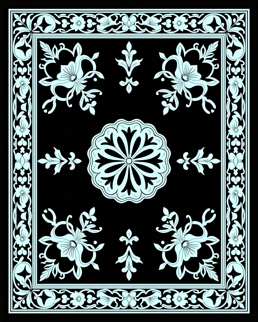 Elegant Damask Scrollwork with Classic Floral Embellishments (Black)