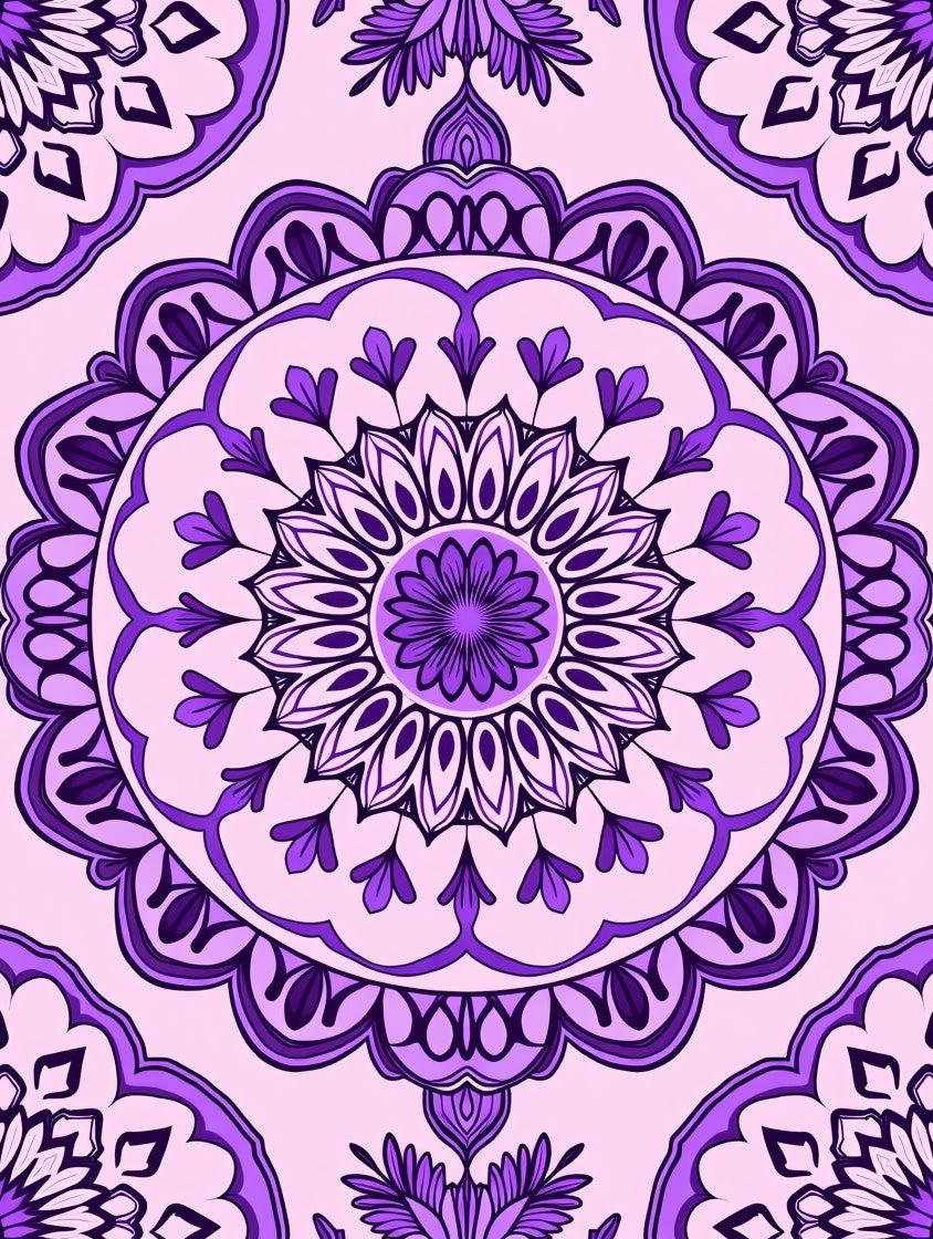 Elegant Floral Medallion Swirl Ornate Decorative (Purple)