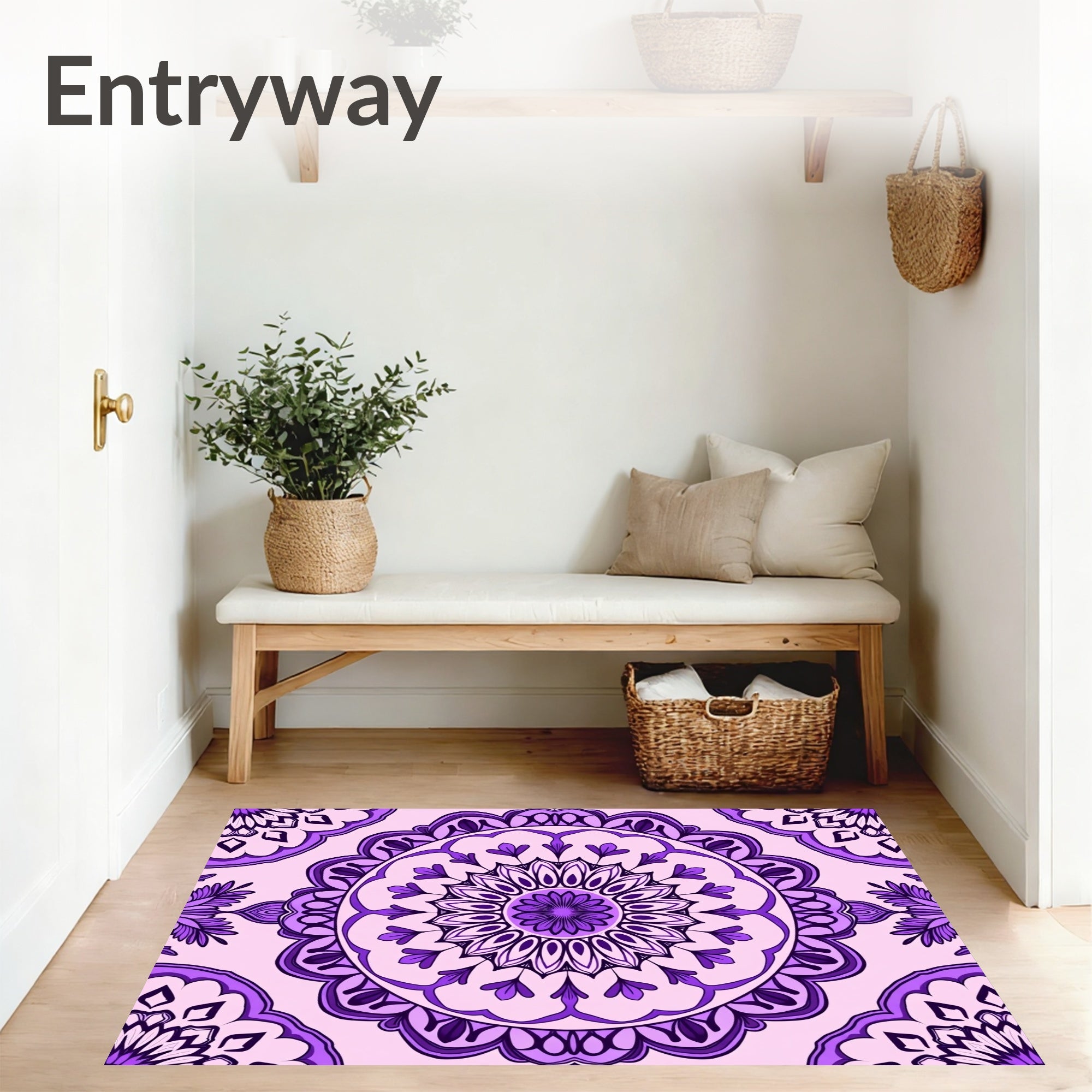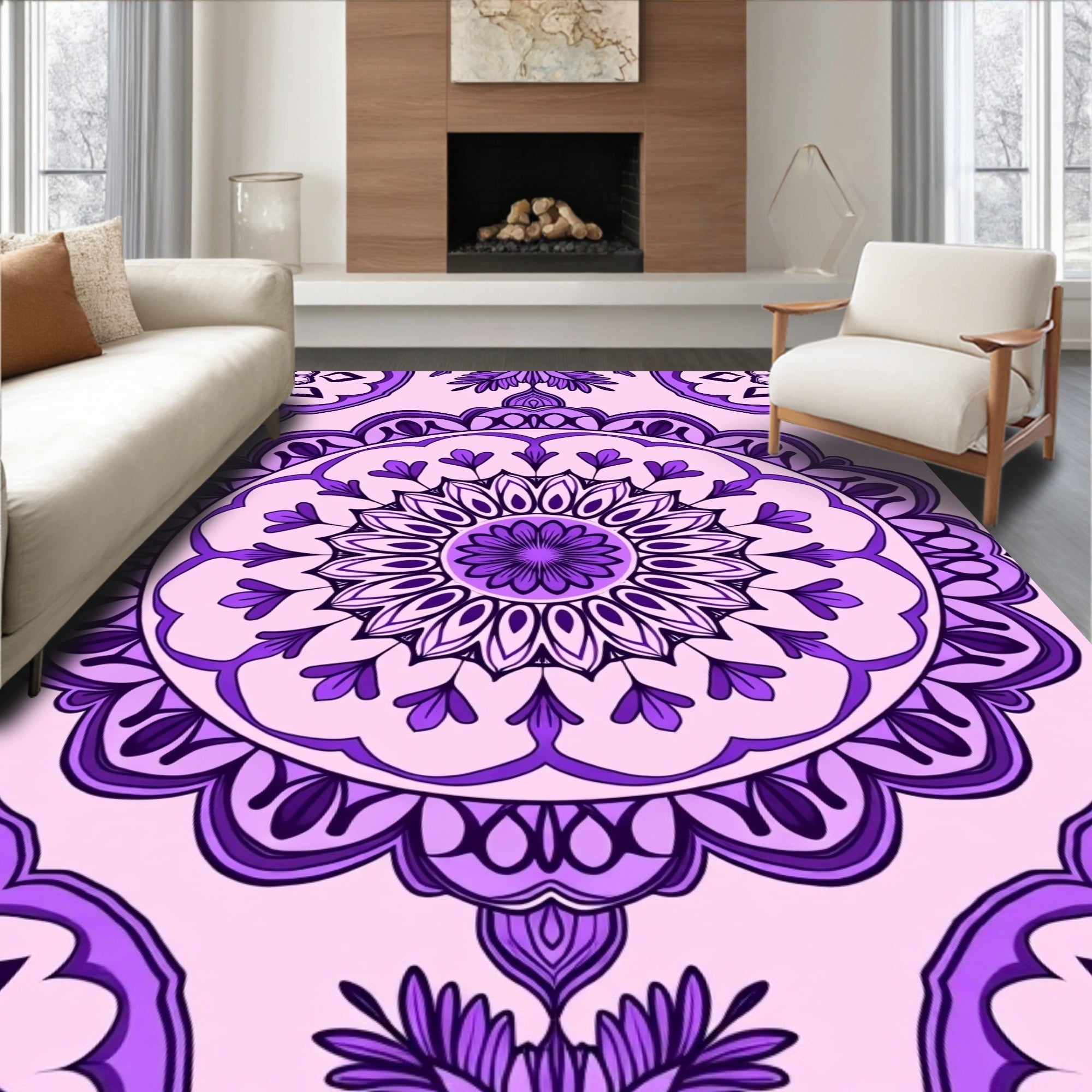 Flatwoven High Traffic Area Rug, Elegant Floral Medallion Swirl Ornate Decorative, Non Slip, Stain Resistant, Washable Area Rugs for Living Room, Bedroom (Purple) Overview: