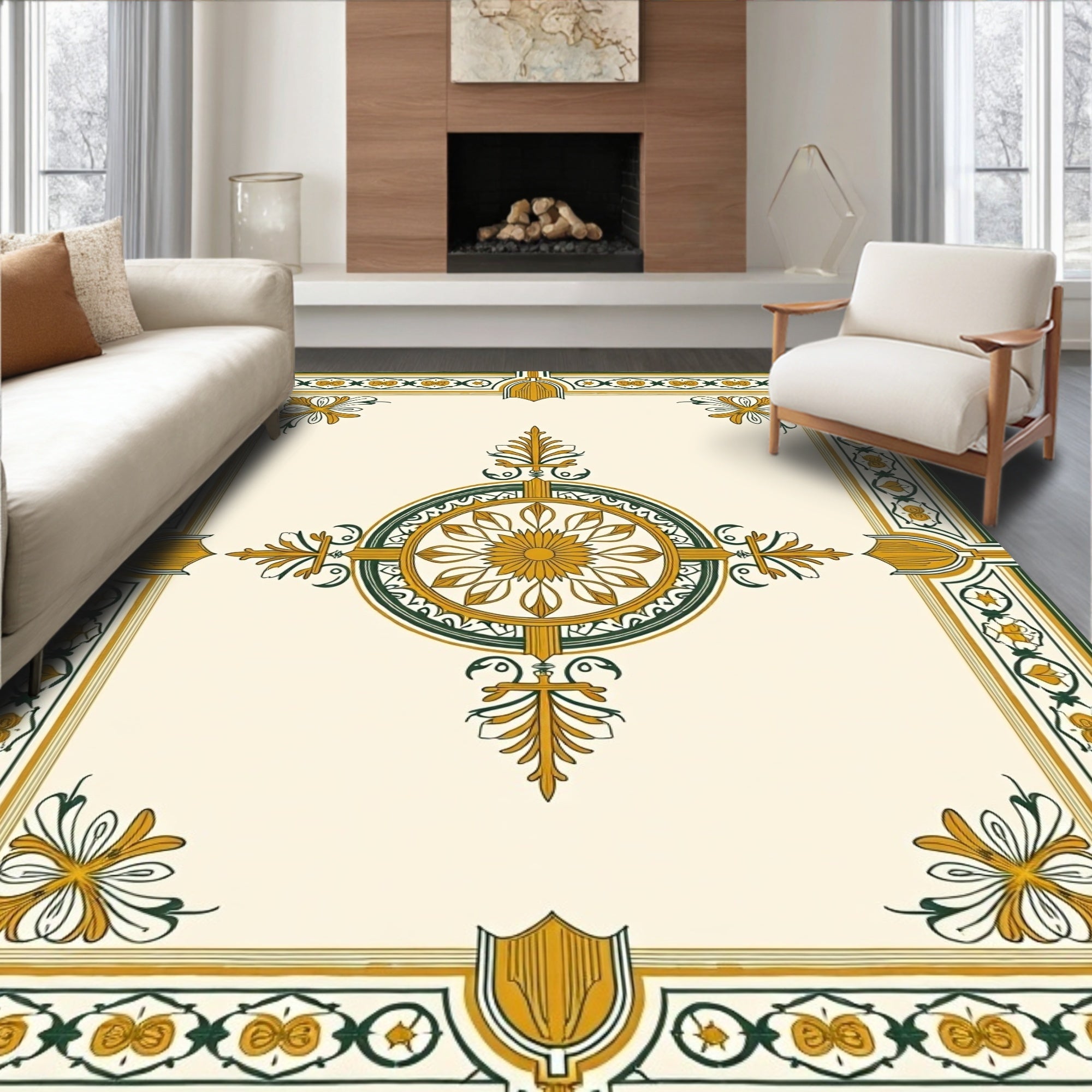 Flatwoven High Traffic Area Rug, Elegant Medallion Motif Featuring Ornate Interlocking Floral Accents, Non Slip, Stain Resistant, Washable Area Rugs for Living Room, Bedroom (Ivory) Overview: