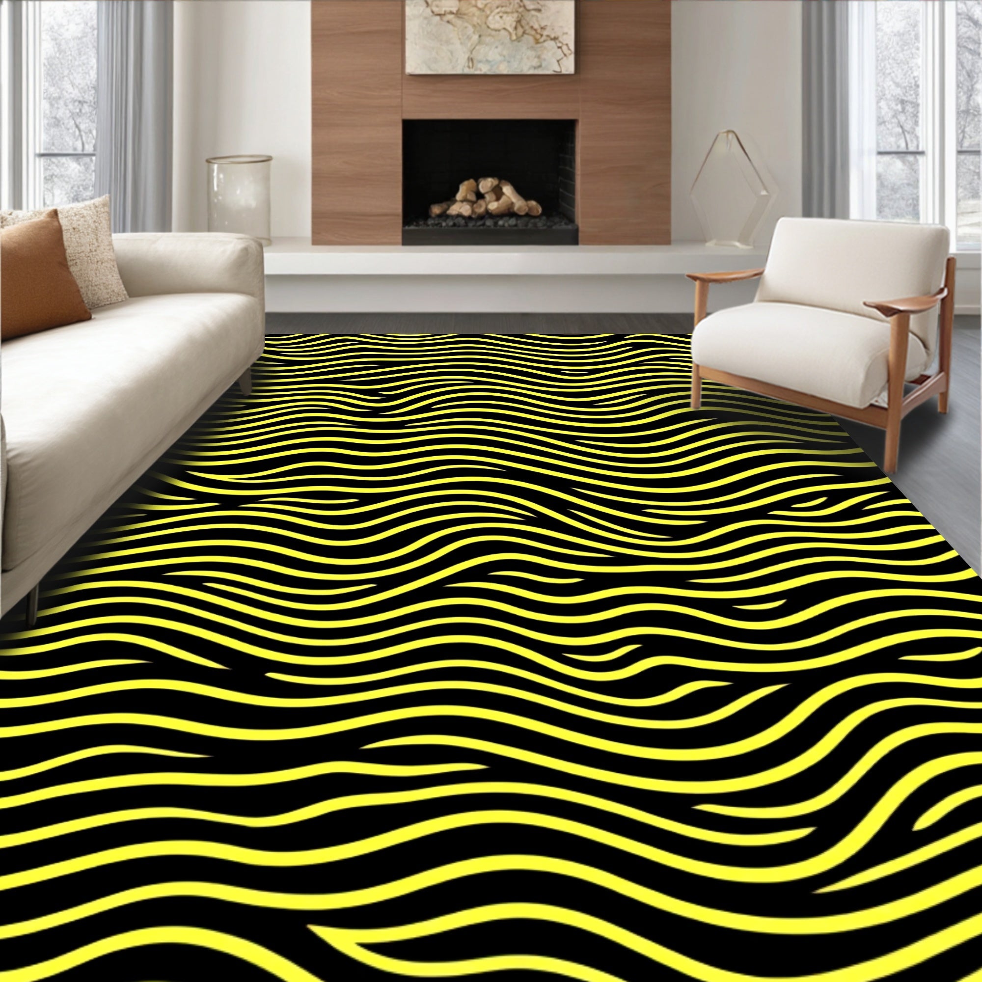 Elegant Wavy Textured Deluxe Comfortable Stylish Modern (Black)