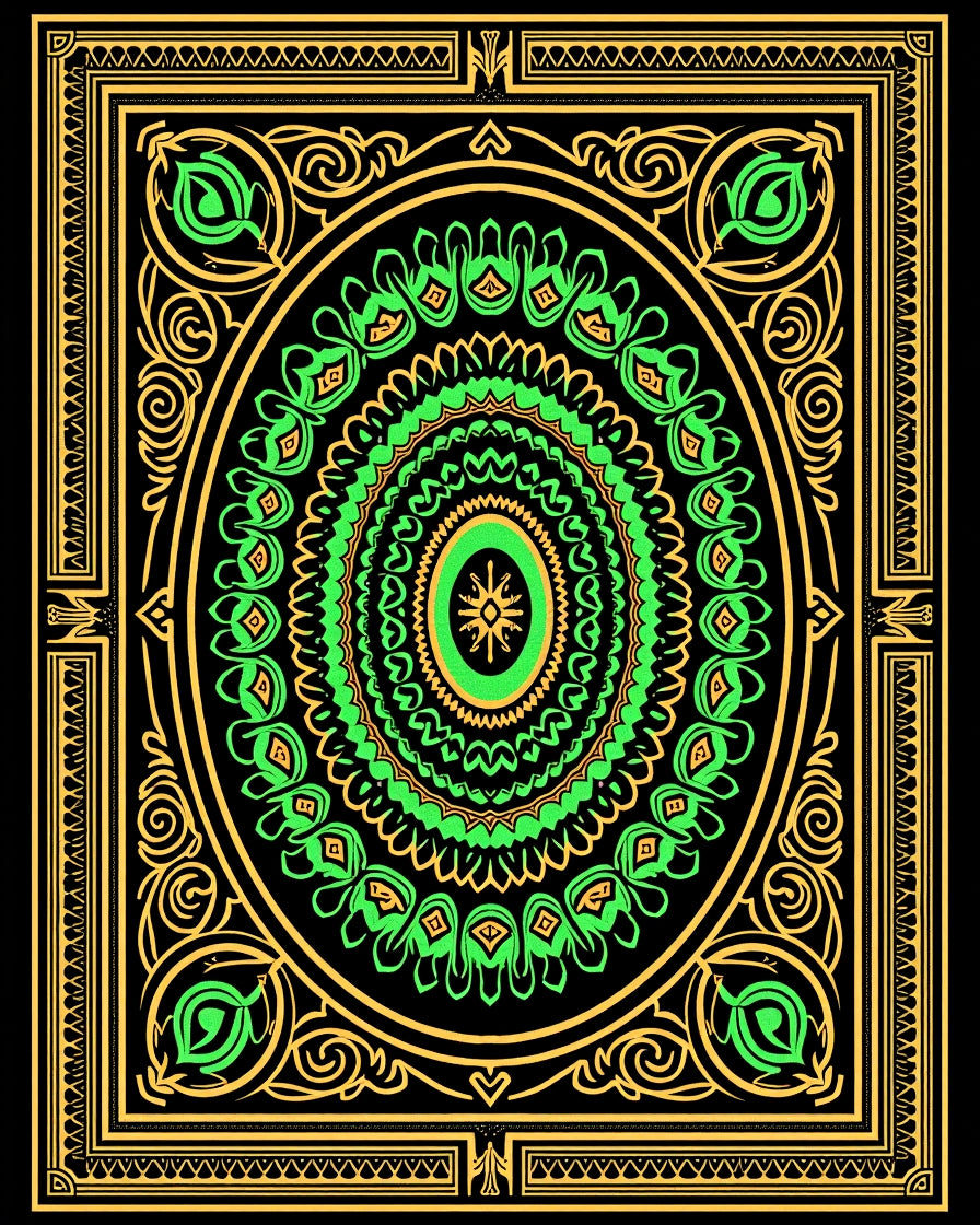 Emerald Spiral Medallion with Intricate Interlocking Motifs (Black)