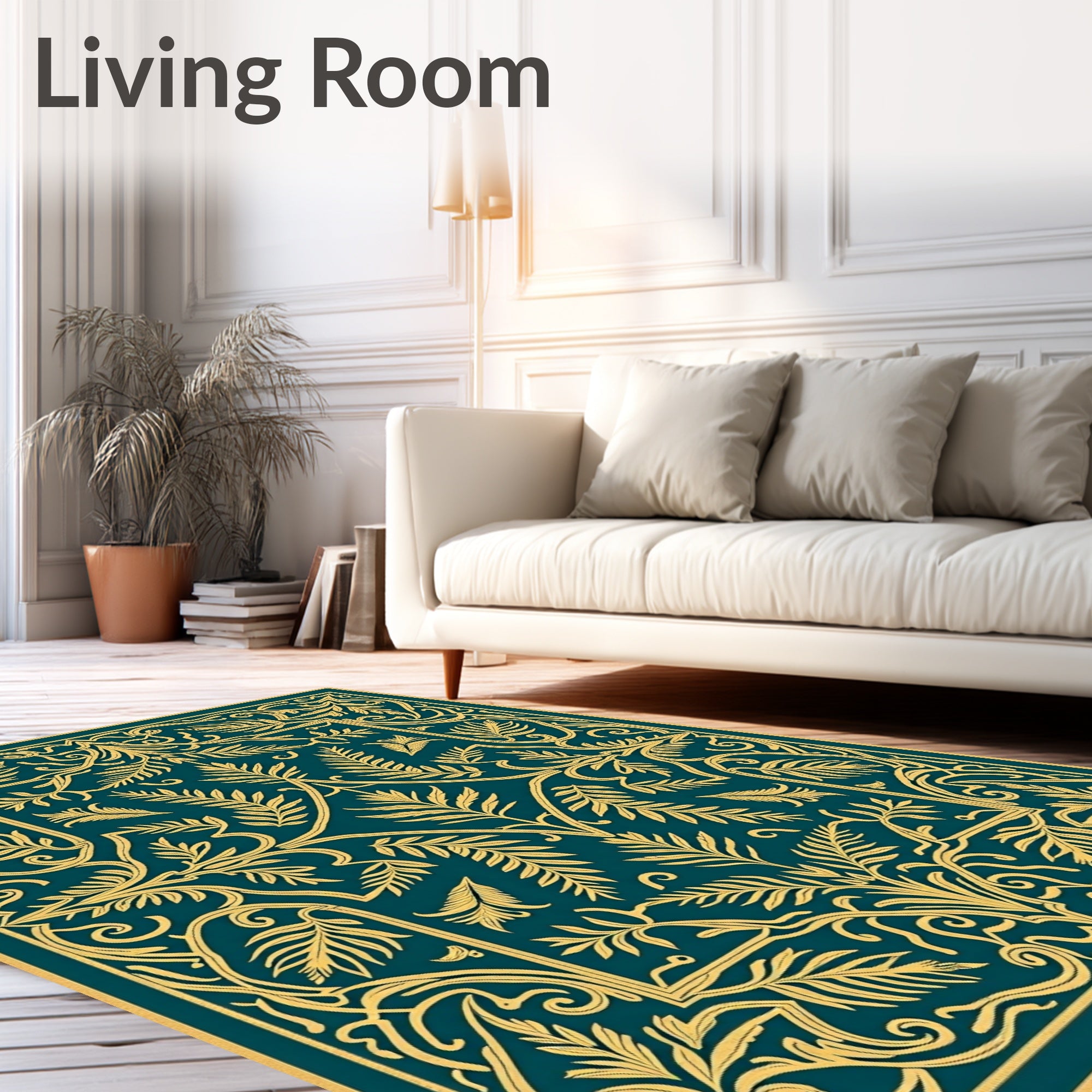 Flatwoven High Traffic Area Rug, Enchanted Fern Maze Botanical, Non Slip, Stain Resistant, Washable Area Rugs for Living Room, Bedroom (Gold) Overview: