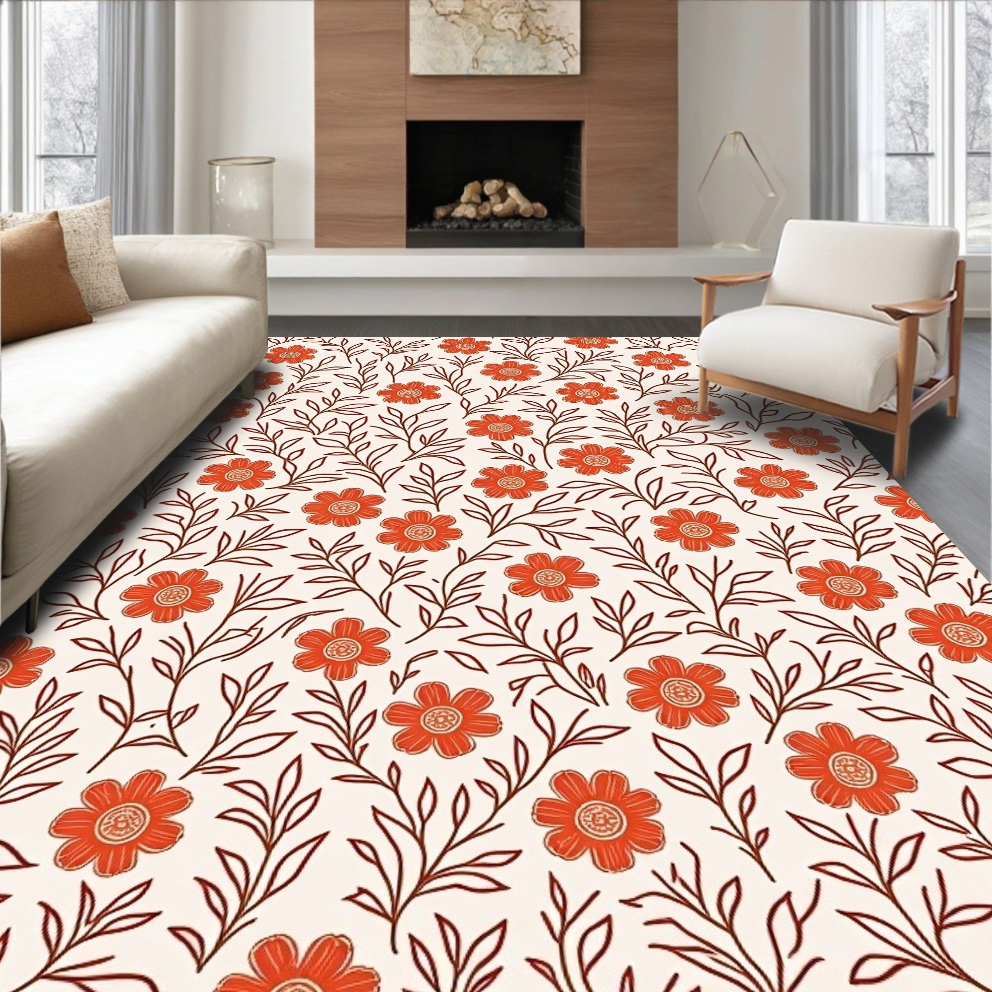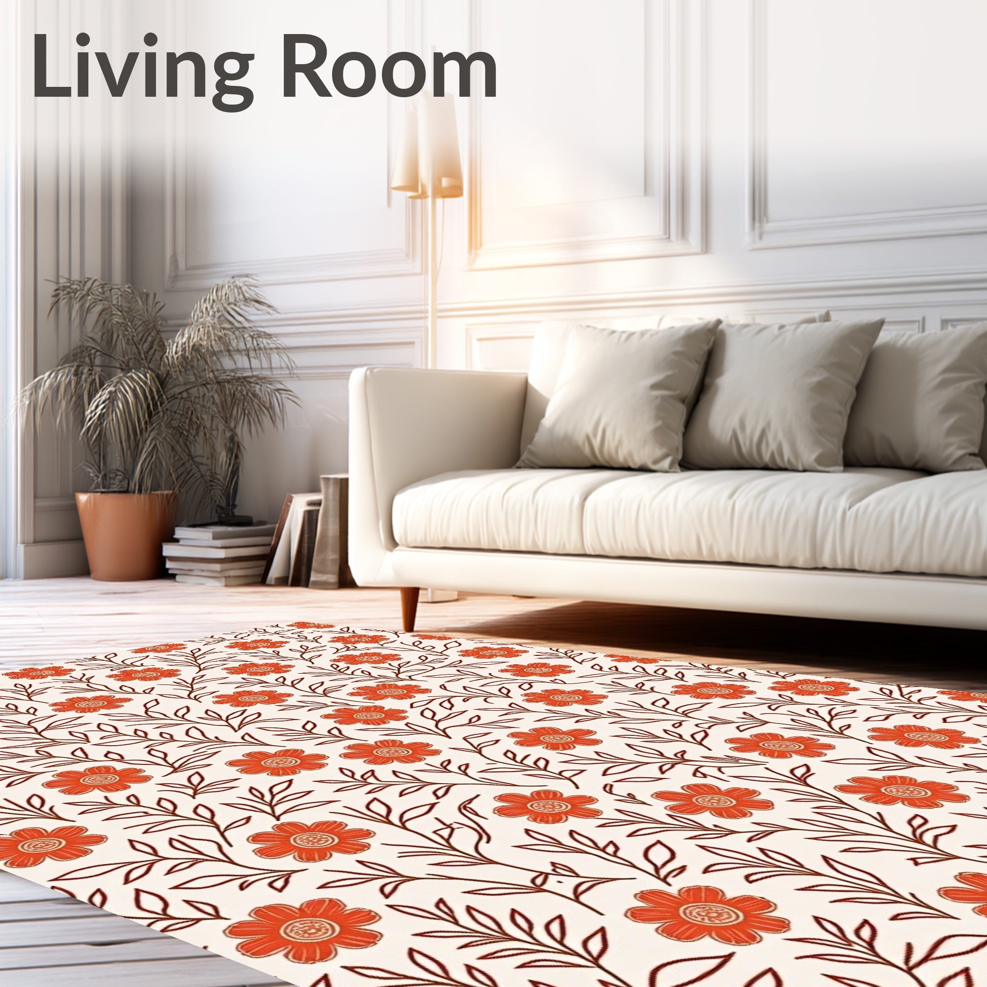 Flatwoven High Traffic Area Rug, Enchanted Floral Vine Botanical Symphony Pathway Treasure, Non Slip, Stain Resistant, Washable Area Rugs for Living Room, Bedroom (Orange) Overview: