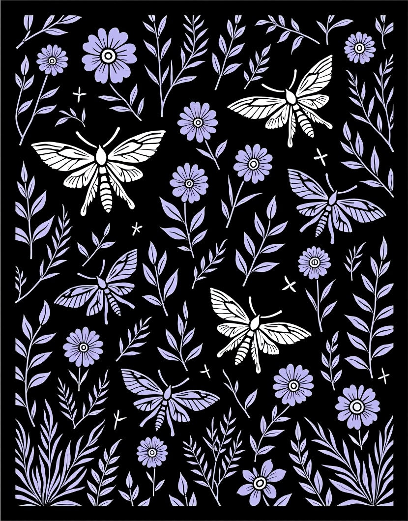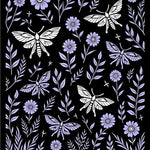 Enchanted Forest Moth Dance with Wildflowers and Delicate Ferns (Black)