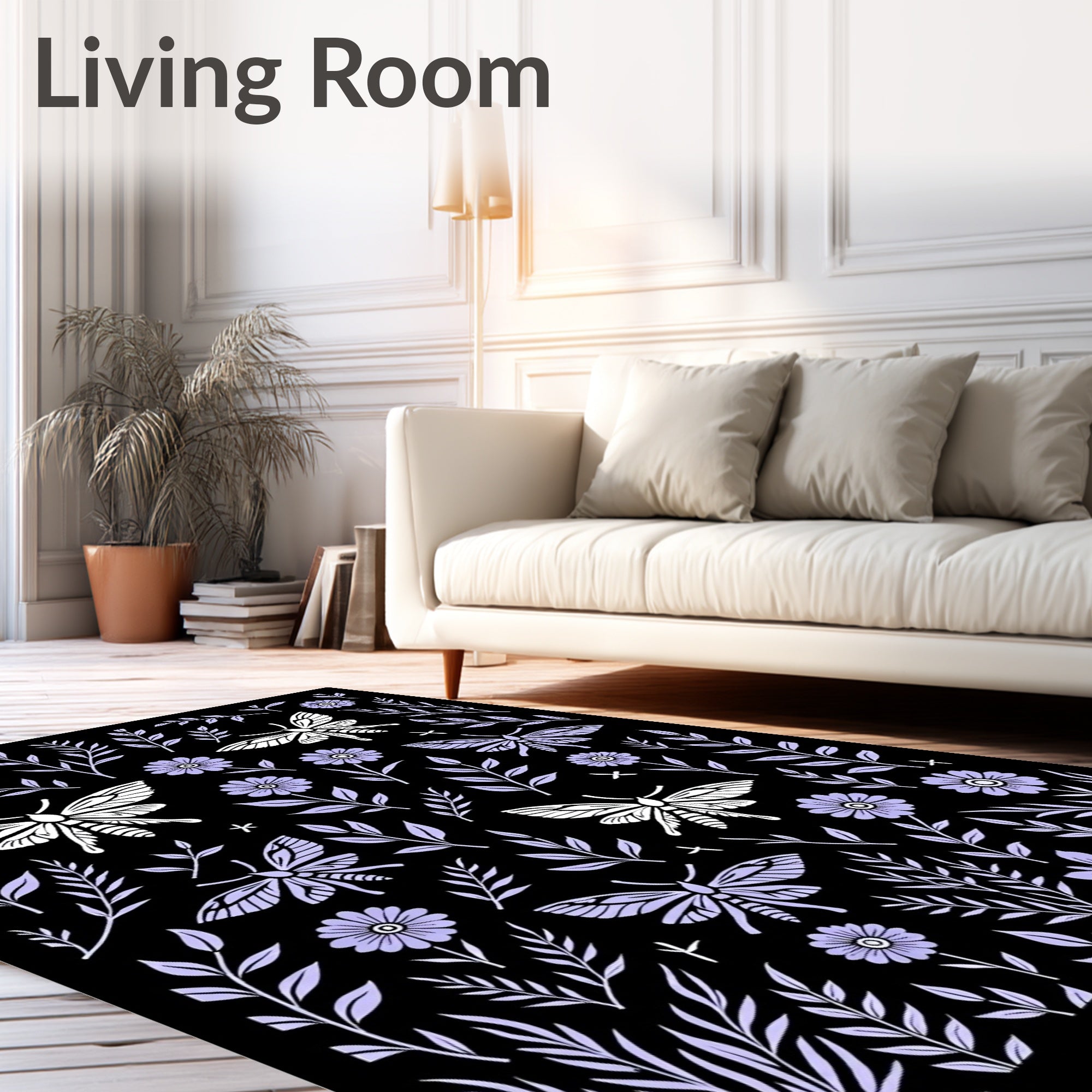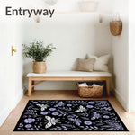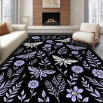 Flatwoven High Traffic Area Rug, Enchanted Forest Moth Dance with Wildflowers and Delicate Ferns, Non Slip, Stain Resistant, Washable Area Rugs for Living Room, Bedroom (Black) Overview: