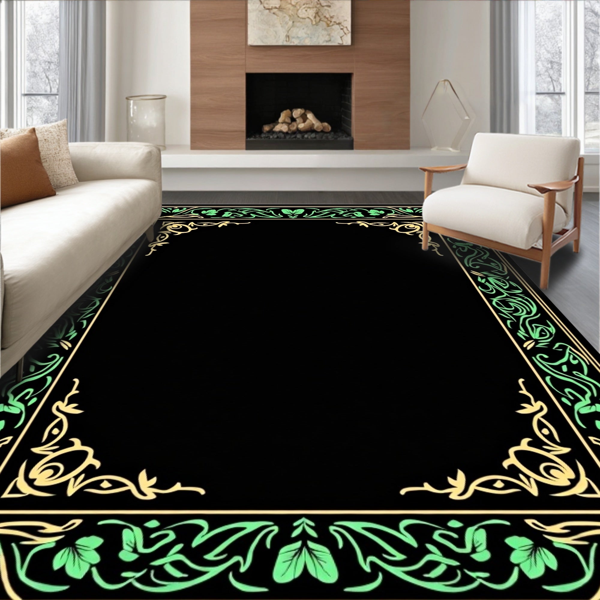 Flatwoven High Traffic Area Rug, Enchanted Forest With Elegant Botanical Motifs, Non Slip, Stain Resistant, Washable Area Rugs for Living Room, Bedroom (Black) Overview: