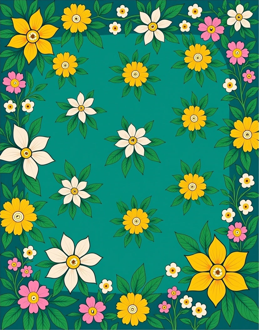 Flatwoven High Traffic Area Rug, Enchanted Garden Blossom Decorative Covering, Non Slip, Stain Resistant, Washable Area Rugs for Living Room, Bedroom (Teal) Overview: