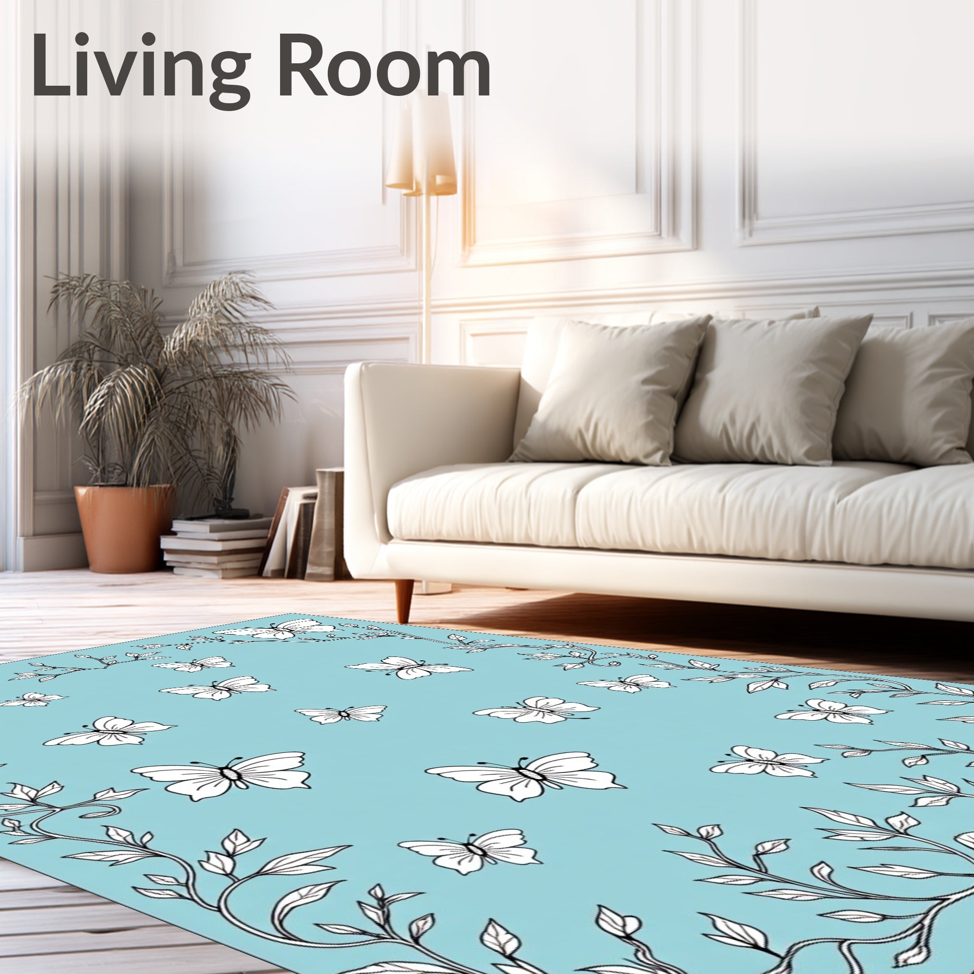 Flatwoven High Traffic Area Rug, Enchanted Garden Dance with Floral Vine Motifs, Non Slip, Stain Resistant, Washable Area Rugs for Living Room, Bedroom (Blue) Overview:
