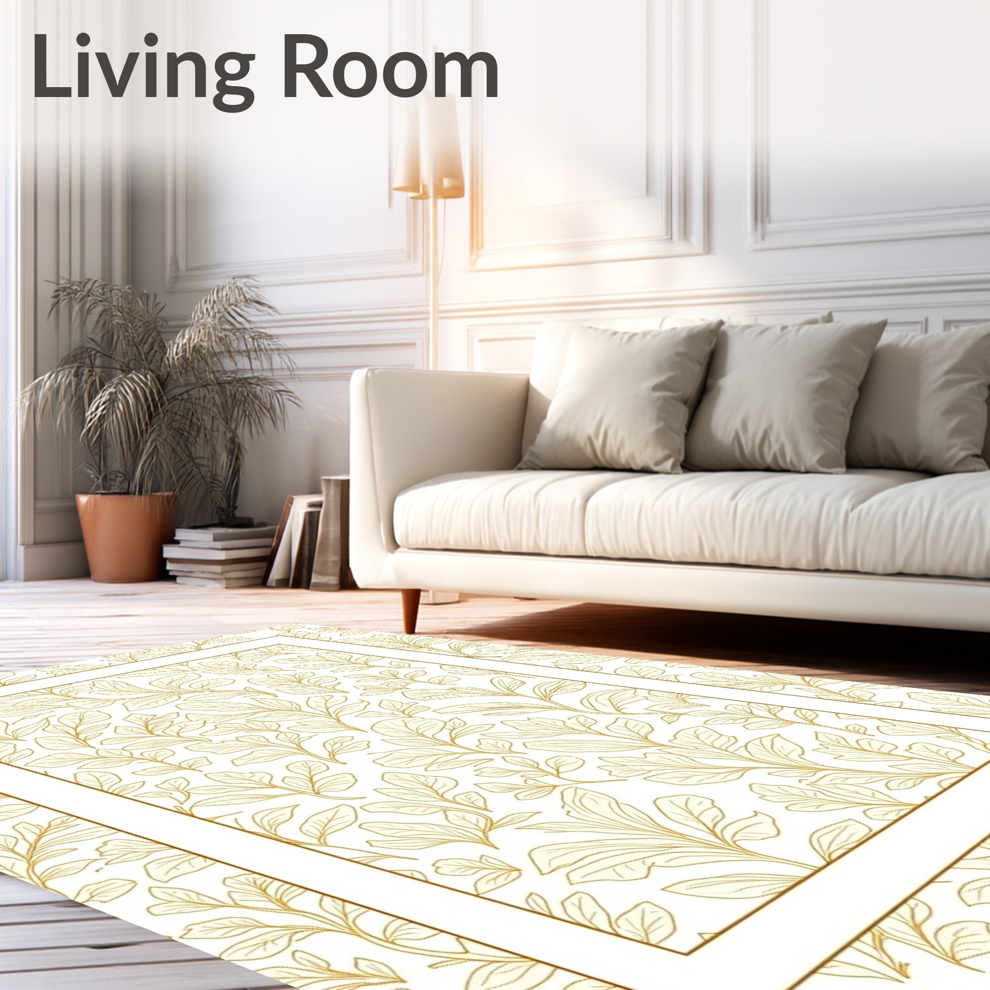 Flatwoven High Traffic Area Rug, Enchanted Garden Traditional Artisan Motif, Non Slip, Stain Resistant, Washable Area Rugs for Living Room, Bedroom (Gold) Overview: