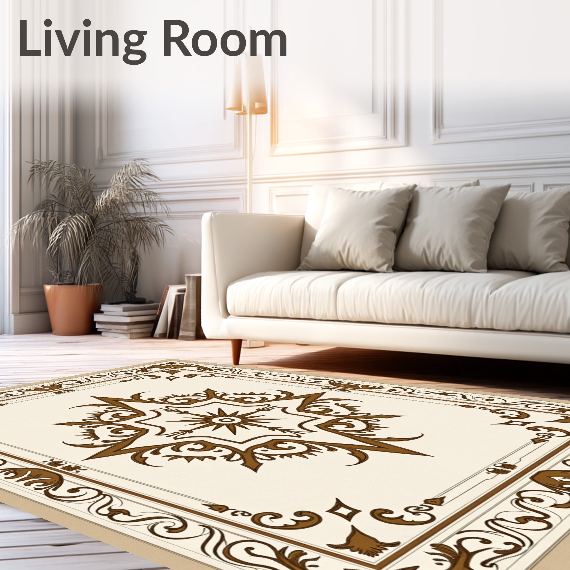 Flatwoven High Traffic Area Rug, Enchanting Damask Treasure Boasting Elaborate Flourishes, Non Slip, Stain Resistant, Washable Area Rugs for Living Room, Bedroom (Brown) Overview: