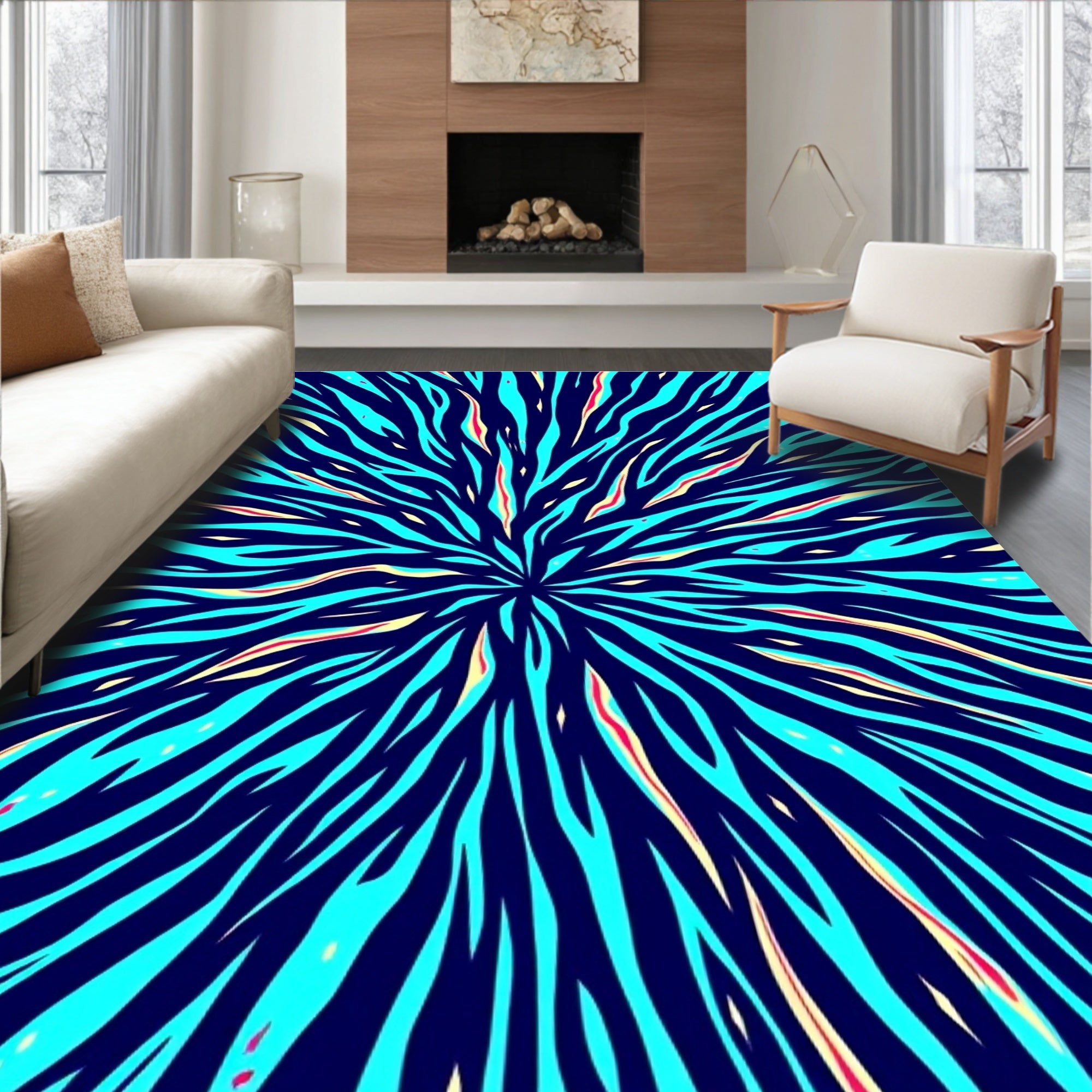 Flatwoven High Traffic Area Rug, Energetic Lightning Bolt with Abstract Stripes and Radiant Highlights, Non Slip, Stain Resistant, Washable Area Rugs for Living Room, Bedroom (Blue) Overview: