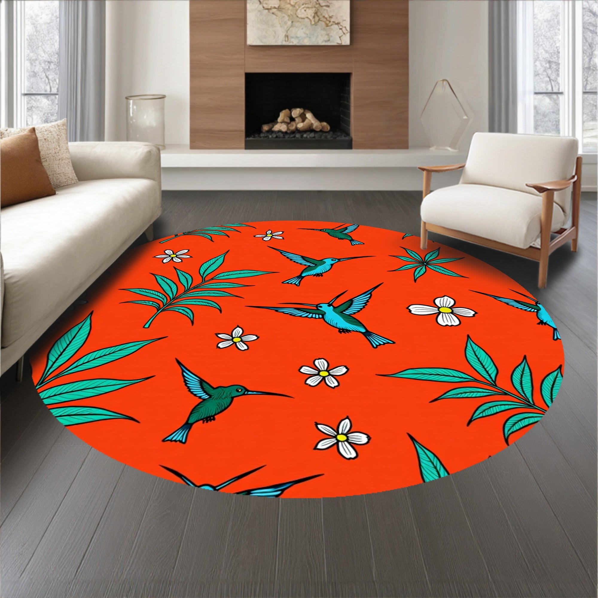 Flatwoven High Traffic Area Rug, Exotic Garden Symphony Hummingbird Botanical Artistic, Non Slip, Stain Resistant, Washable Area Rugs for Living Room, Bedroom (Red) Overview: