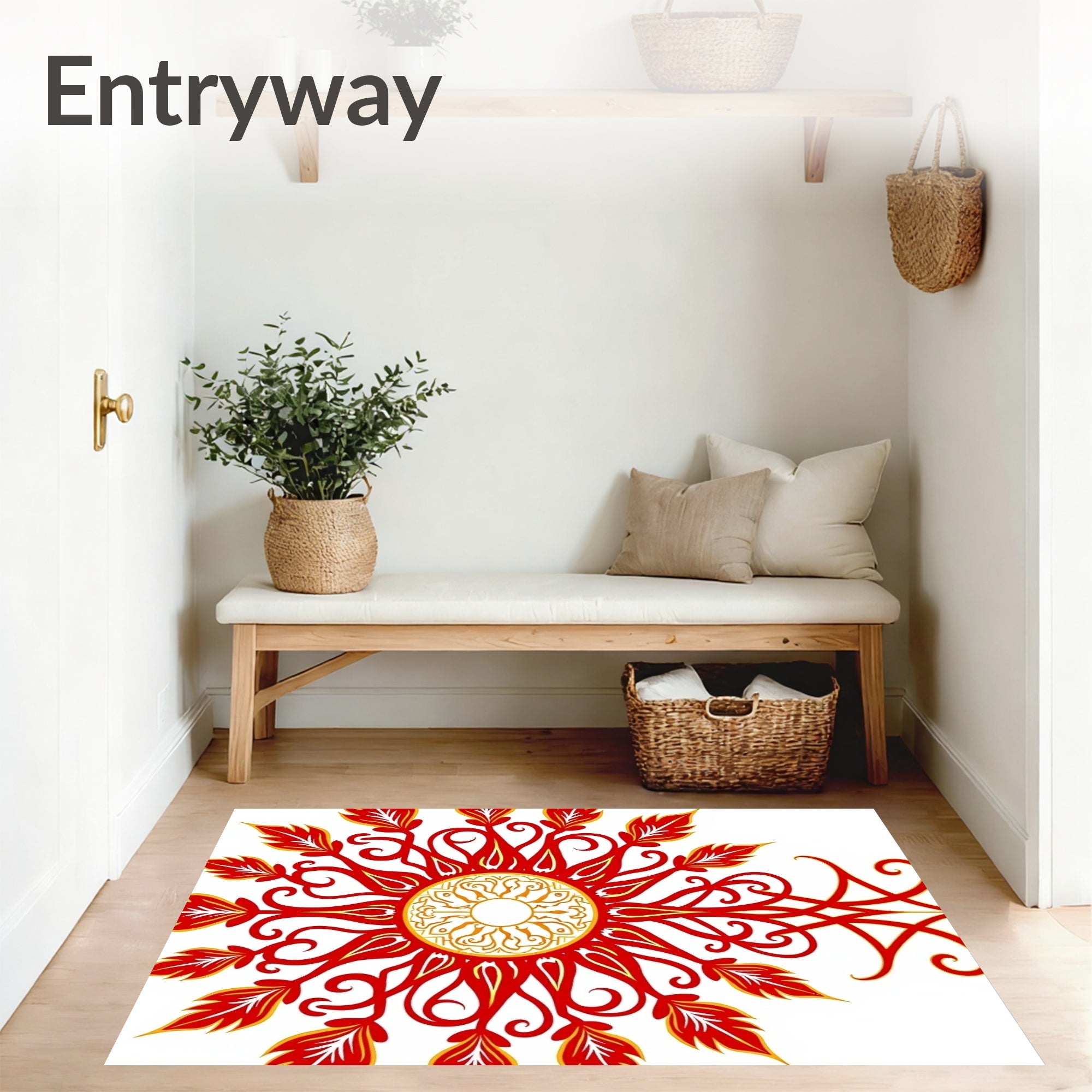 Flatwoven High Traffic Area Rug, Flare Artistic Expression, Non Slip, Stain Resistant, Washable Area Rugs for Living Room, Bedroom (Red) Overview: