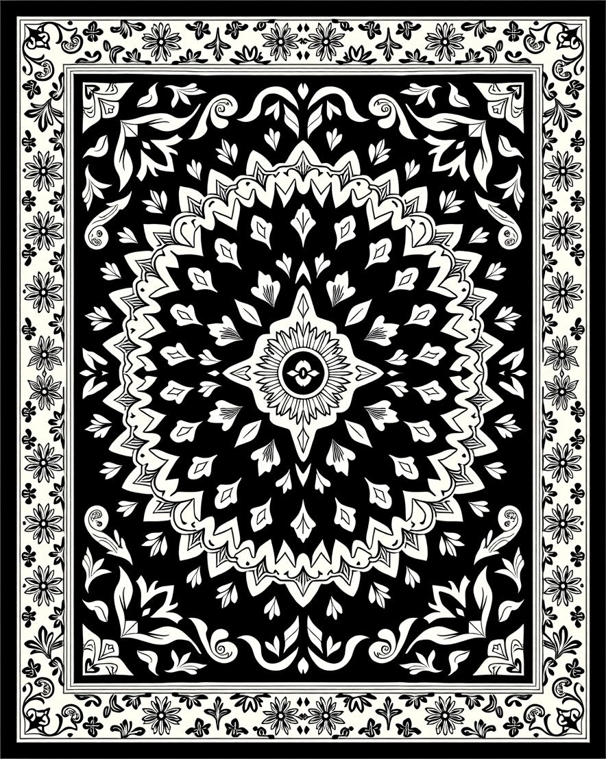 Floral Blossom Ornate Decorative Fancy (Black)