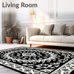 Flatwoven High Traffic Area Rug, Floral Blossom Ornate Decorative Fancy, Non Slip, Stain Resistant, Washable Area Rugs for Living Room, Bedroom (Black) Overview: