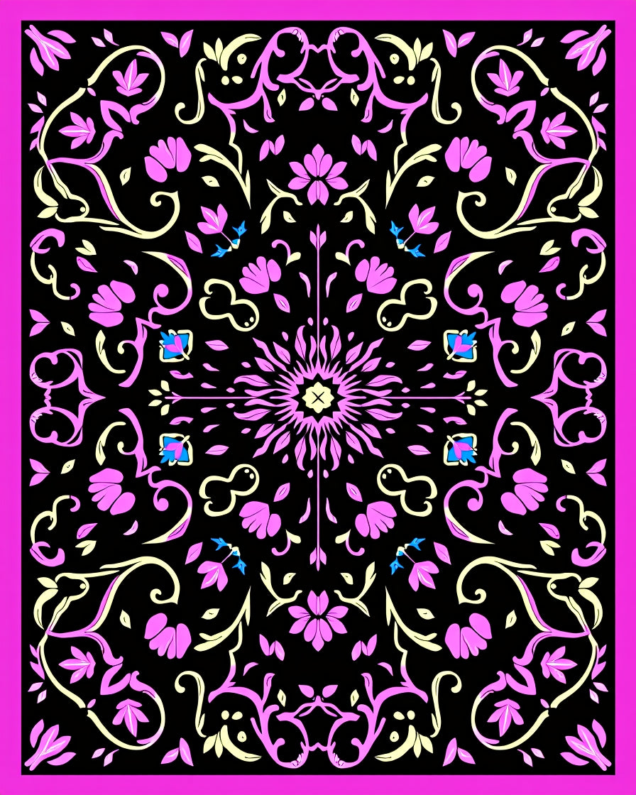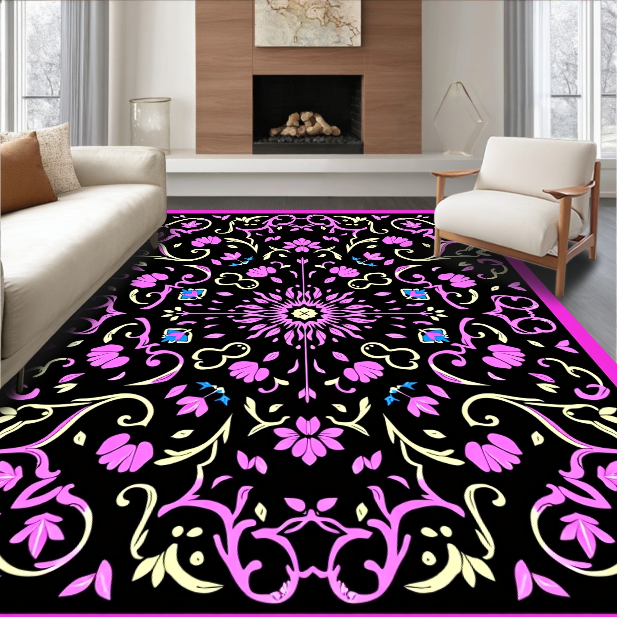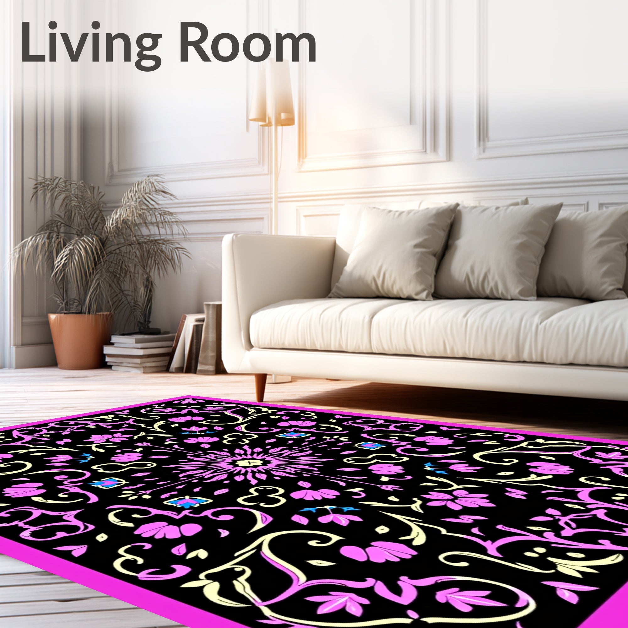 Flatwoven High Traffic Area Rug, Floral Cascade Petal Scrollwork Whimsical Botanical Embellishments, Non Slip, Stain Resistant, Washable Area Rugs for Living Room, Bedroom (Black) Overview: