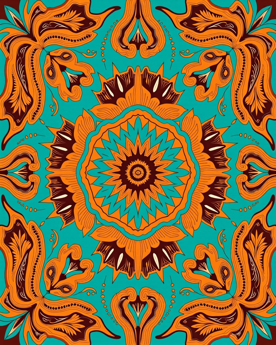 Floral Interlocking Medallions with Novelty Boho (Orange)