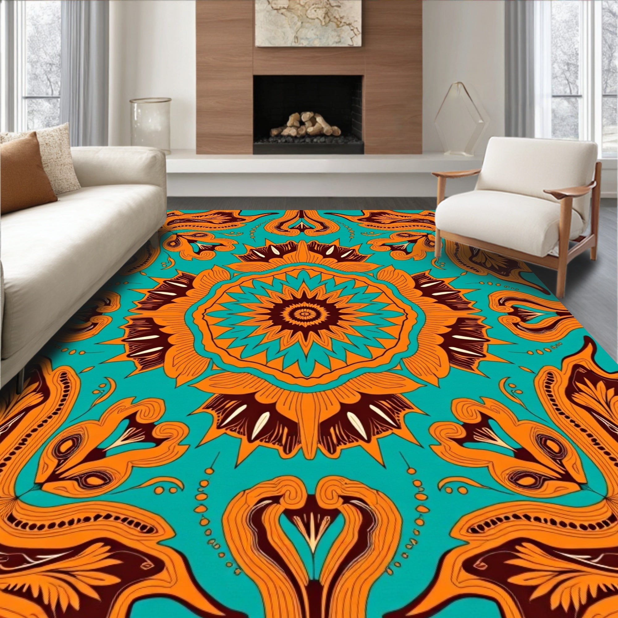 Flatwoven High Traffic Area Rug, Floral Interlocking Medallions with Novelty Boho, Non Slip, Stain Resistant, Washable Area Rugs for Living Room, Bedroom (Orange) Overview: