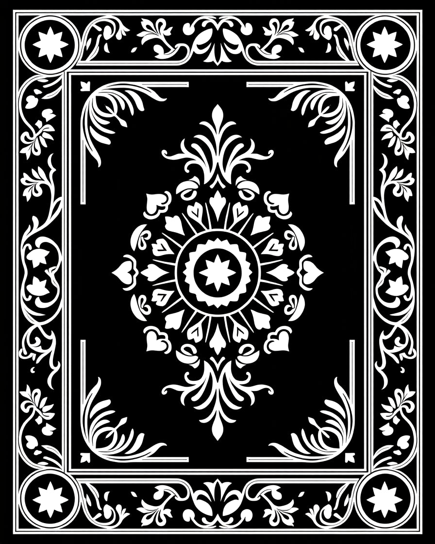 Floral Medallion Motif with Interlocking Vines and Petal Accents (Black)