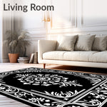 Flatwoven High Traffic Area Rug, Floral Medallion Motif with Interlocking Vines and Petal Accents, Non Slip, Stain Resistant, Washable Area Rugs for Living Room, Bedroom (Black) Overview: