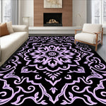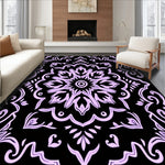 Flatwoven High Traffic Area Rug, Floral Medallion Motif with Whimsical Vine Detailing and Ornate Scrollwork, Non Slip, Stain Resistant, Washable Area Rugs for Living Room, Bedroom (Black) Overview: