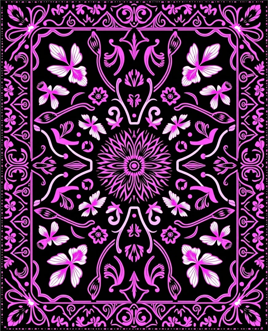 Garden Interlocking Floral Motif with Whimsical Insect Accents (Black)
