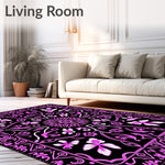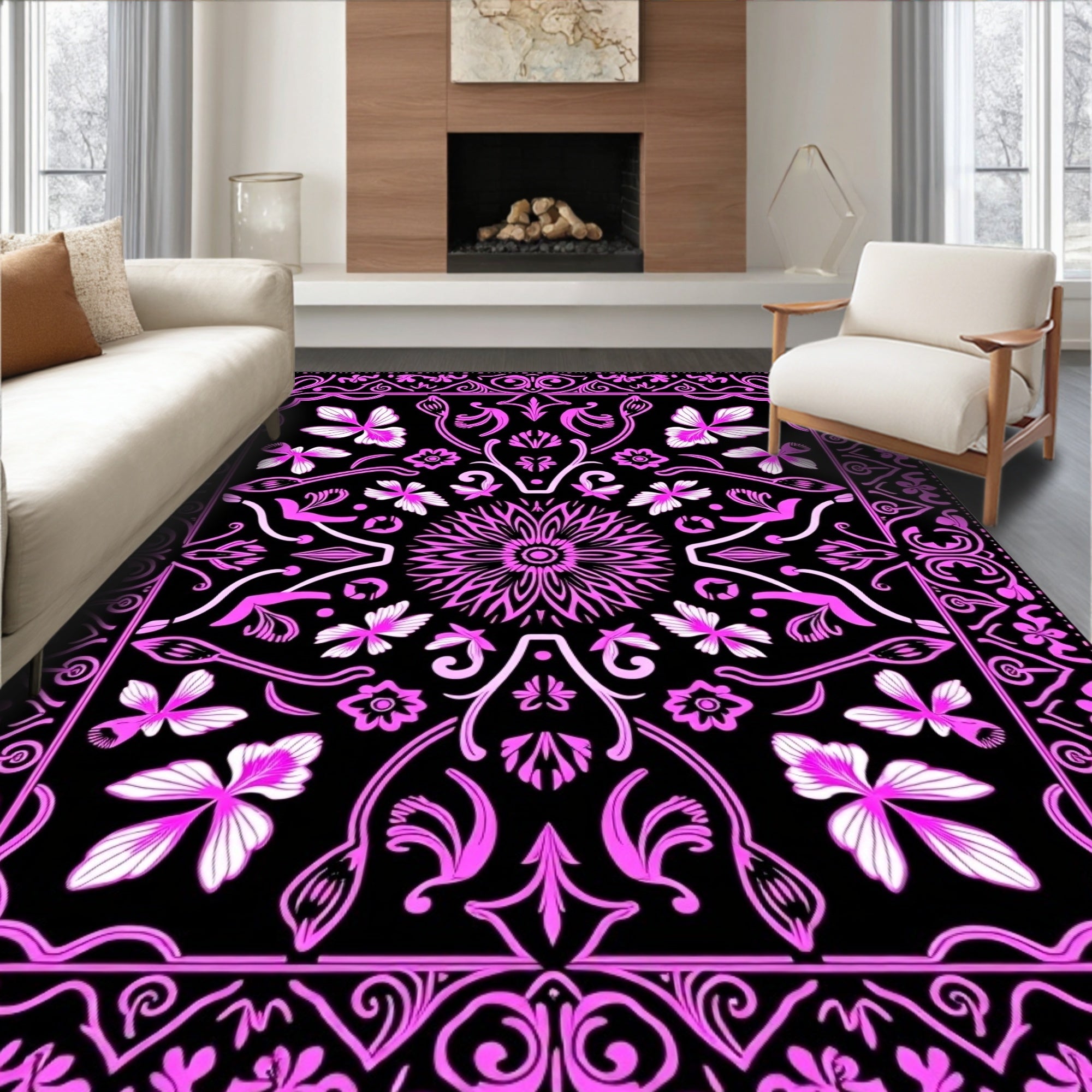 Flatwoven High Traffic Area Rug, Garden Interlocking Floral Motif with Whimsical Insect Accents, Non Slip, Stain Resistant, Washable Area Rugs for Living Room, Bedroom (Black) Overview: