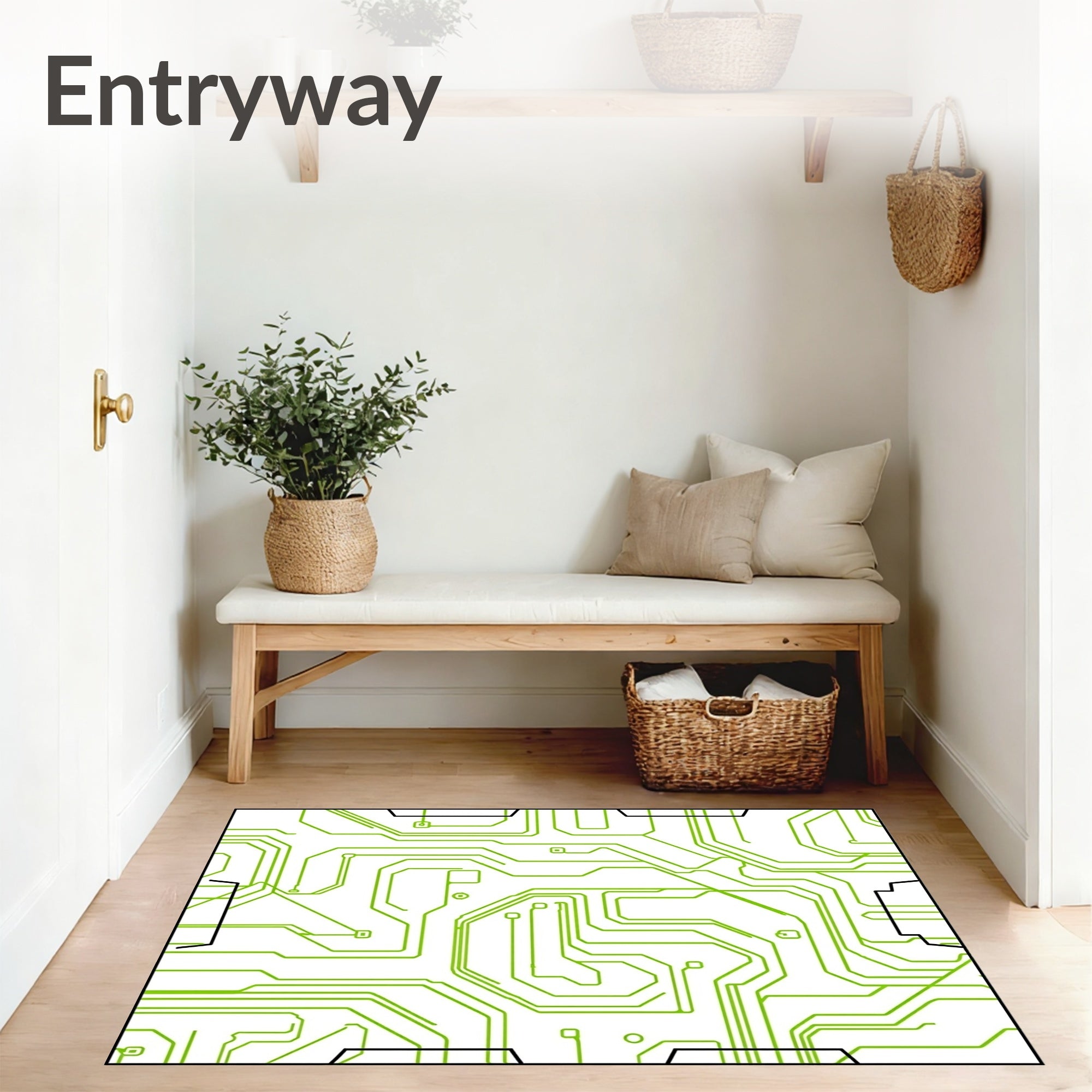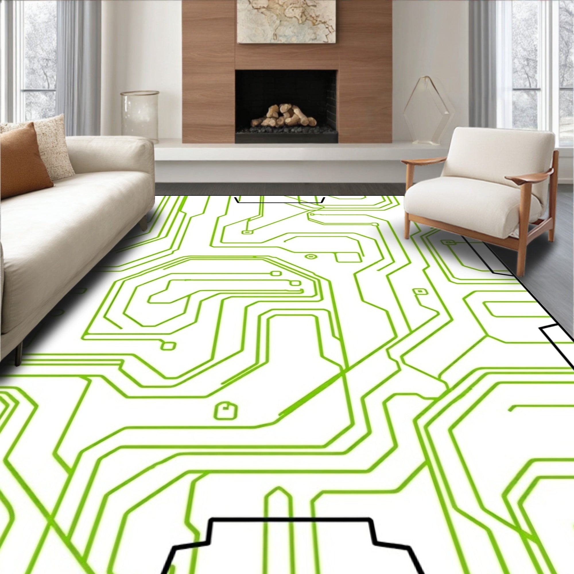 Flatwoven High Traffic Area Rug, Glowing Gamepad with Electric Circuit Board Accents, Non Slip, Stain Resistant, Washable Area Rugs for Living Room, Bedroom (Green) Overview: