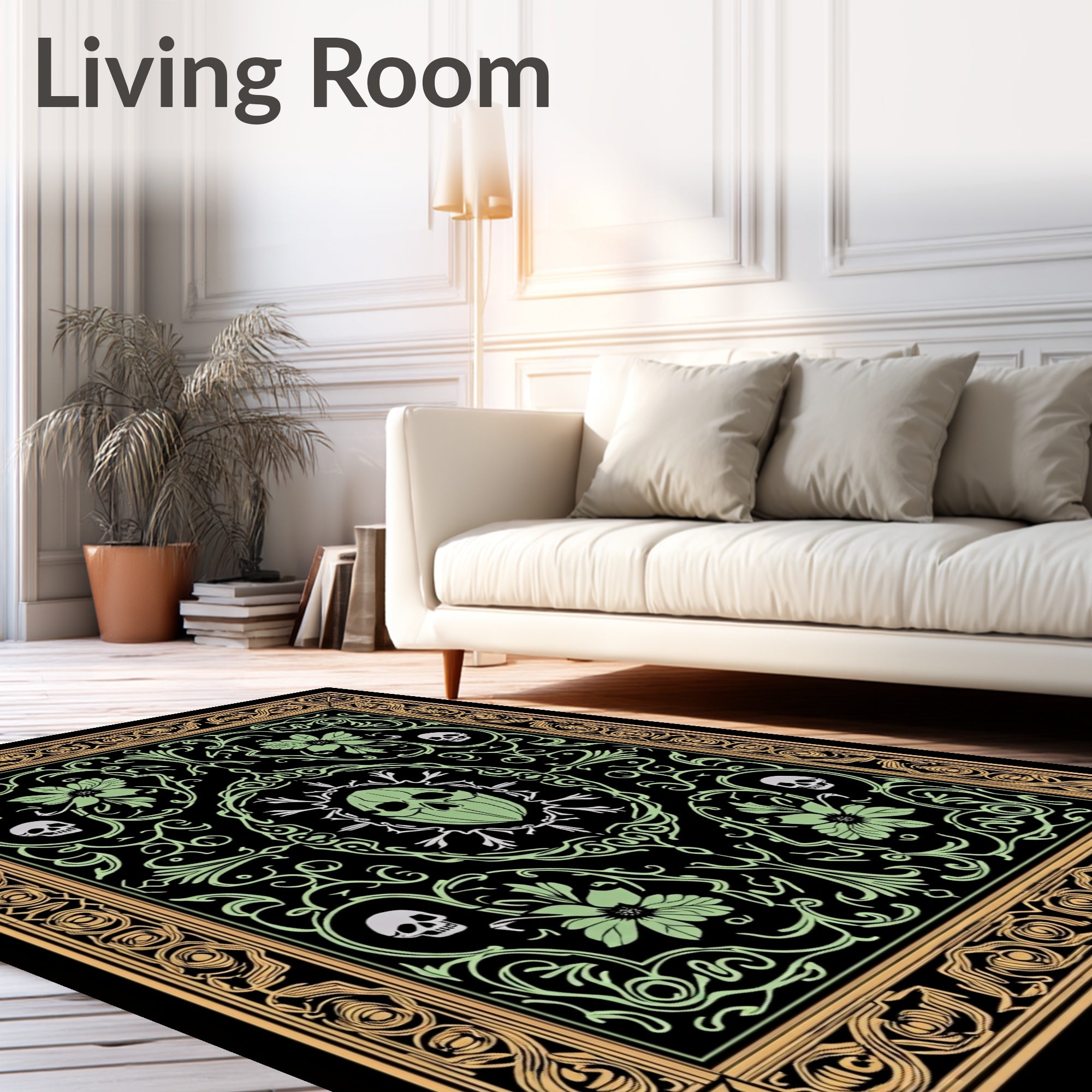 Flatwoven High Traffic Area Rug, Gothic Botanica Beetle and Skull Floral, Non Slip, Stain Resistant, Washable Area Rugs for Living Room, Bedroom (Black) Overview: