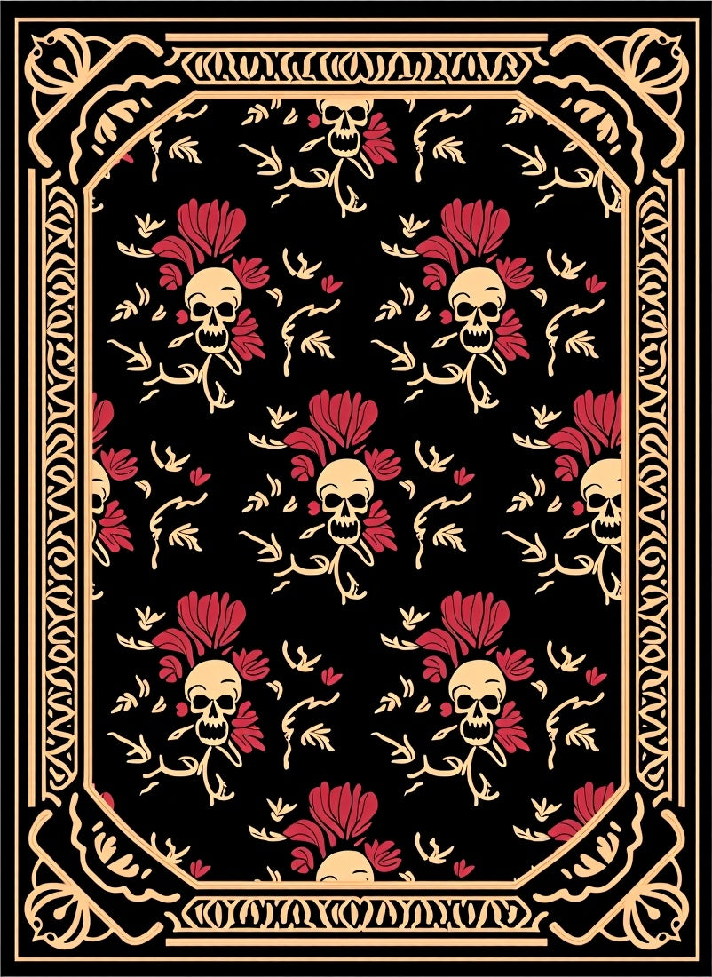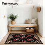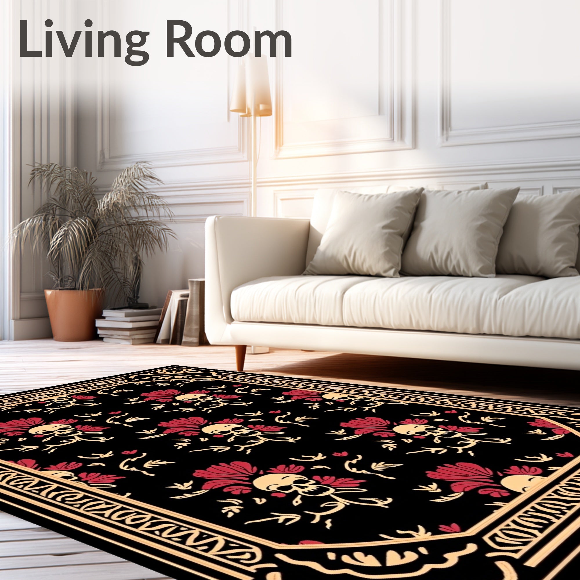 Flatwoven High Traffic Area Rug, Gothic Skull Botanical Floral Motif Dark Academia, Non Slip, Stain Resistant, Washable Area Rugs for Living Room, Bedroom (Black) Overview: