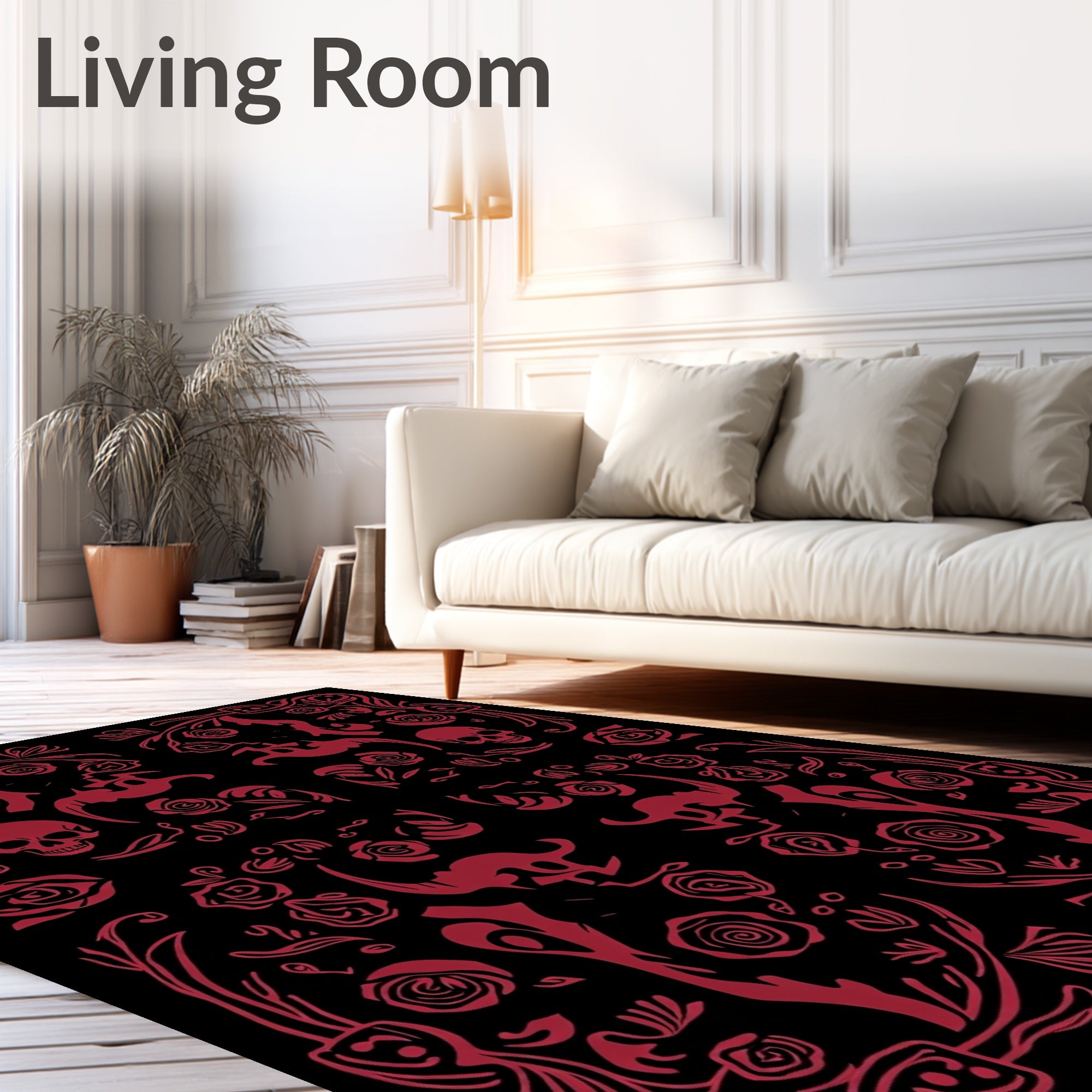 Flatwoven High Traffic Area Rug, Gothic Skull Floral Dark Romance Design Statement, Non Slip, Stain Resistant, Washable Area Rugs for Living Room, Bedroom (Black) Overview: