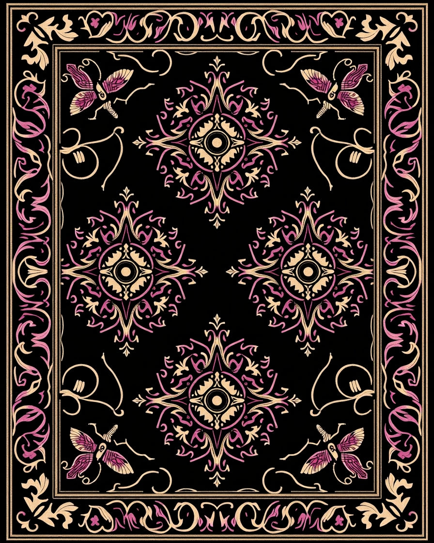 Flatwoven High Traffic Area Rug, Gothic Skull Garden Featuring Moth and Baroque Floral Scrolls, Non Slip, Stain Resistant, Washable Area Rugs for Living Room, Bedroom (Black) Overview: