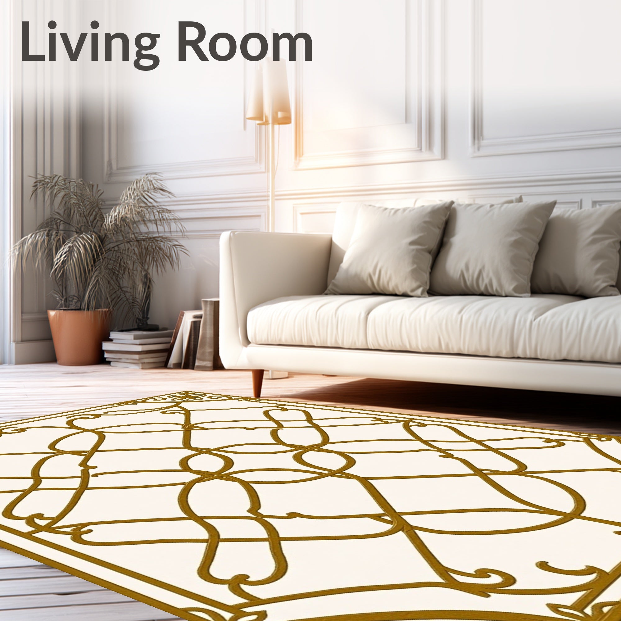 Flatwoven High Traffic Area Rug, Graceful Trellis with Interlocking Floral and Scroll, Non Slip, Stain Resistant, Washable Area Rugs for Living Room, Bedroom (Gold) Overview: