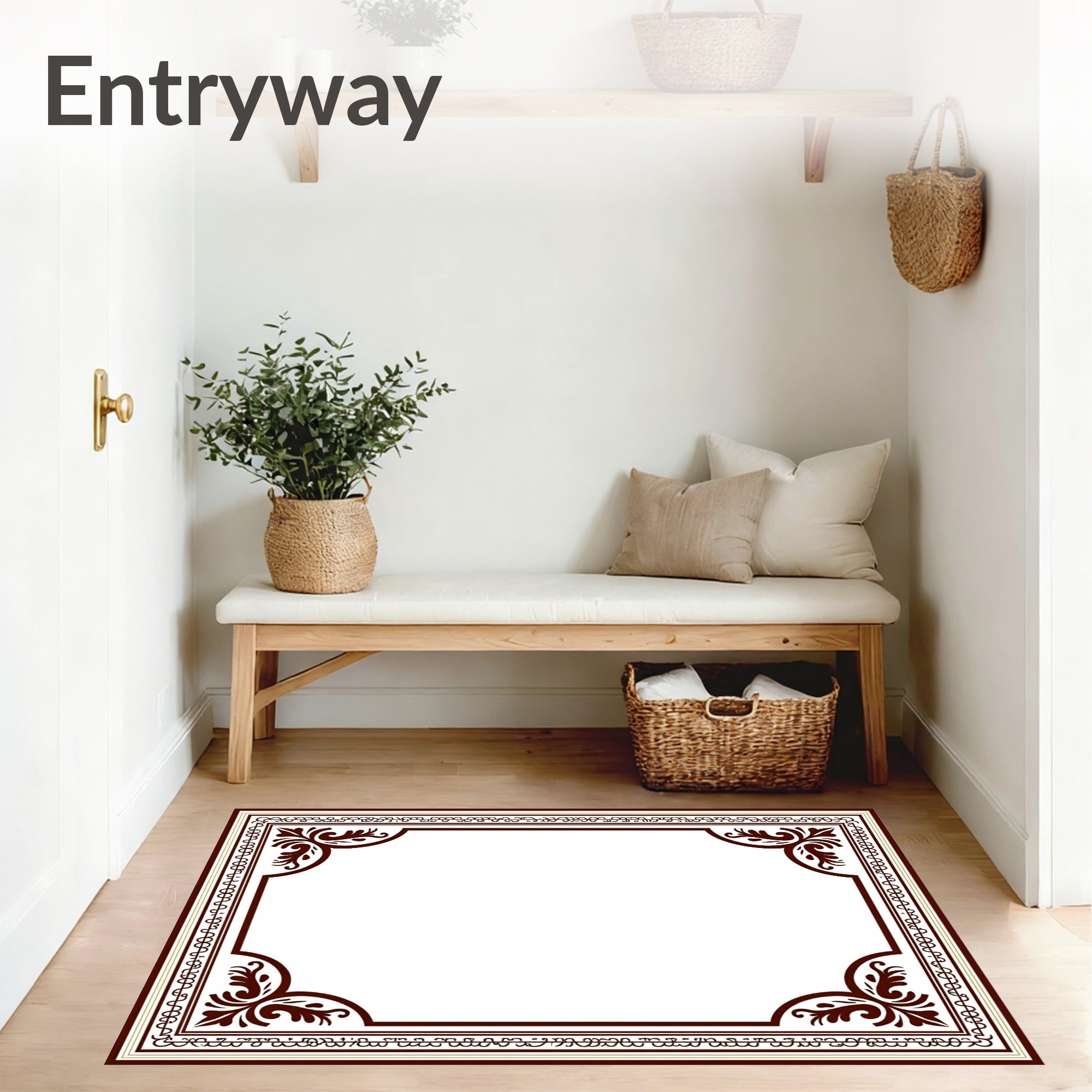 Flatwoven High Traffic Area Rug, Heritage Damask Elegance Featuring Filigree Motifs, Non Slip, Stain Resistant, Washable Area Rugs for Living Room, Bedroom (Brown) Overview: