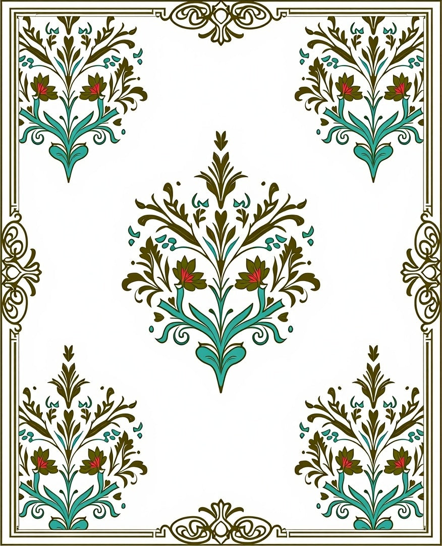 Heritage Damask with Flourishing Wildflower Accents (Brown)