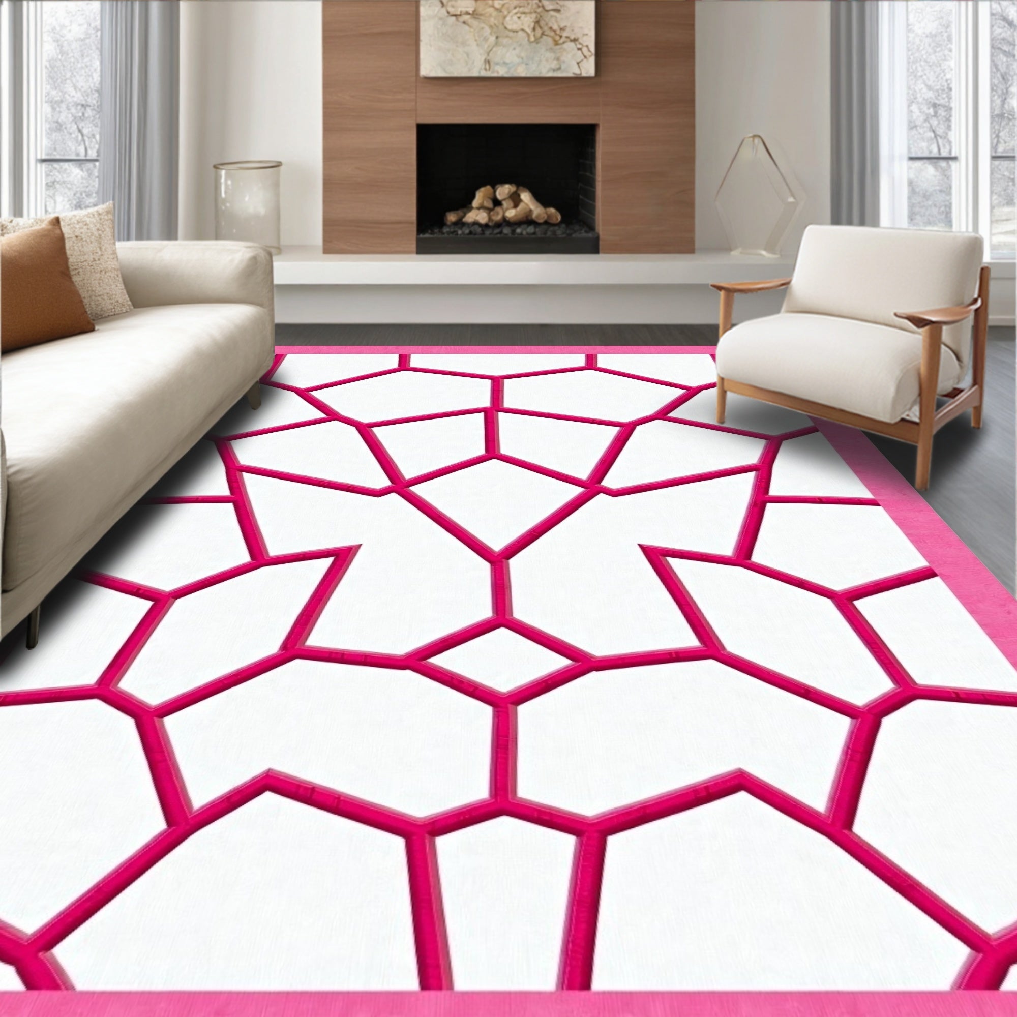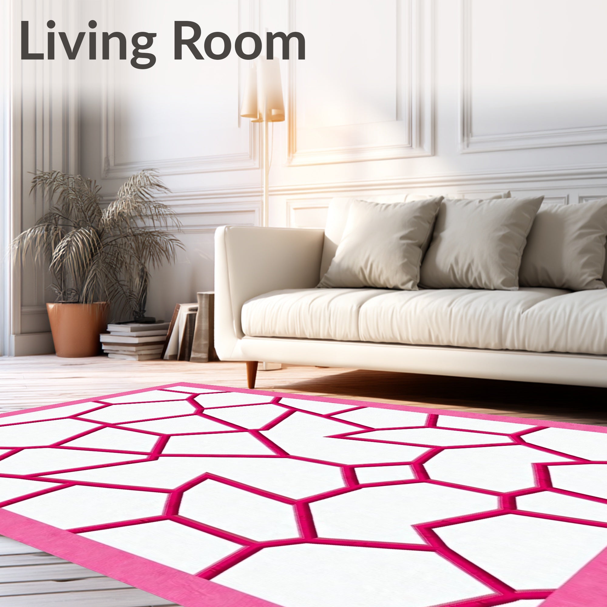 Flatwoven High Traffic Area Rug, Hexagonal Honeycomb Textured Modern Luxury Interior Accent, Non Slip, Stain Resistant, Washable Area Rugs for Living Room, Bedroom (Pink) Overview: