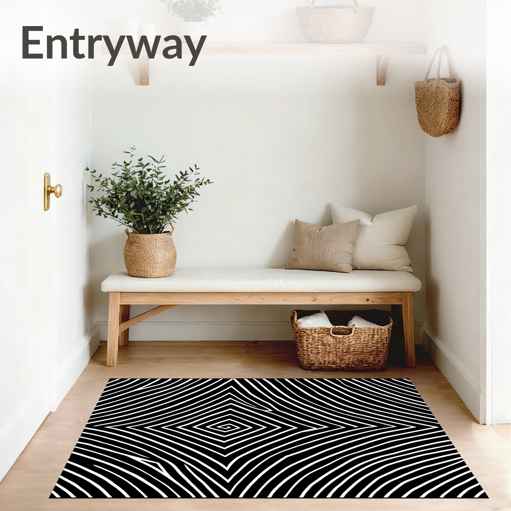 Flatwoven High Traffic Area Rug, Interlocking Chevron Waves with Abstract Accents, Non Slip, Stain Resistant, Washable Area Rugs for Living Room, Bedroom (Black) Overview: