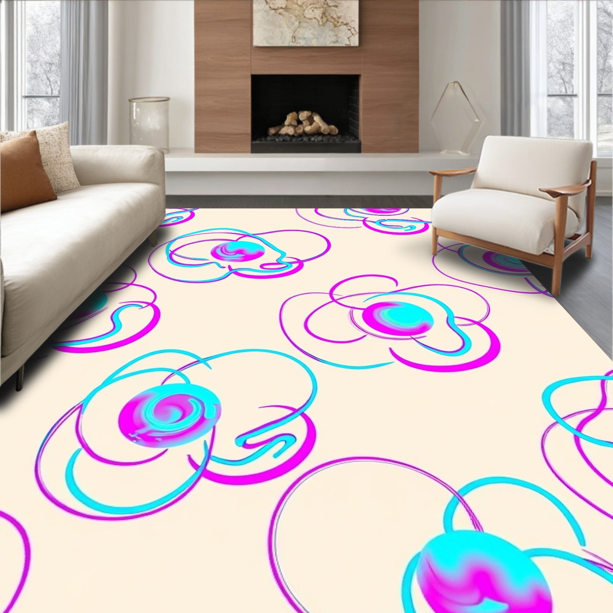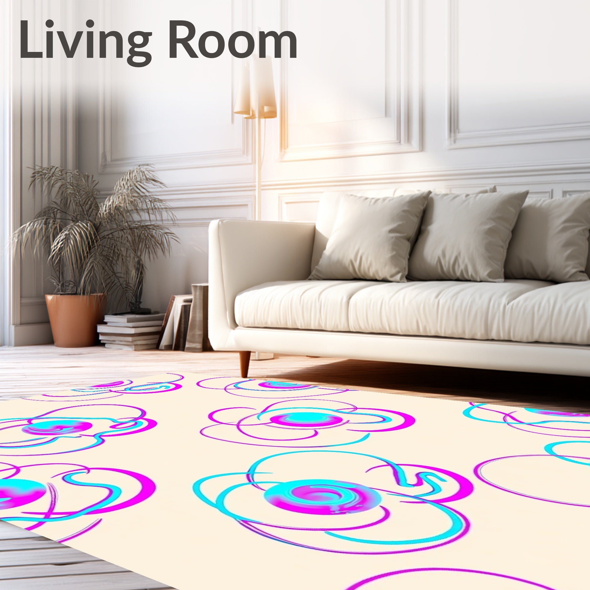 Flatwoven High Traffic Area Rug, Interlocking Digital Buttons with Holographic Gradient Aura Effects, Non Slip, Stain Resistant, Washable Area Rugs for Living Room, Bedroom (Ivory) Overview: