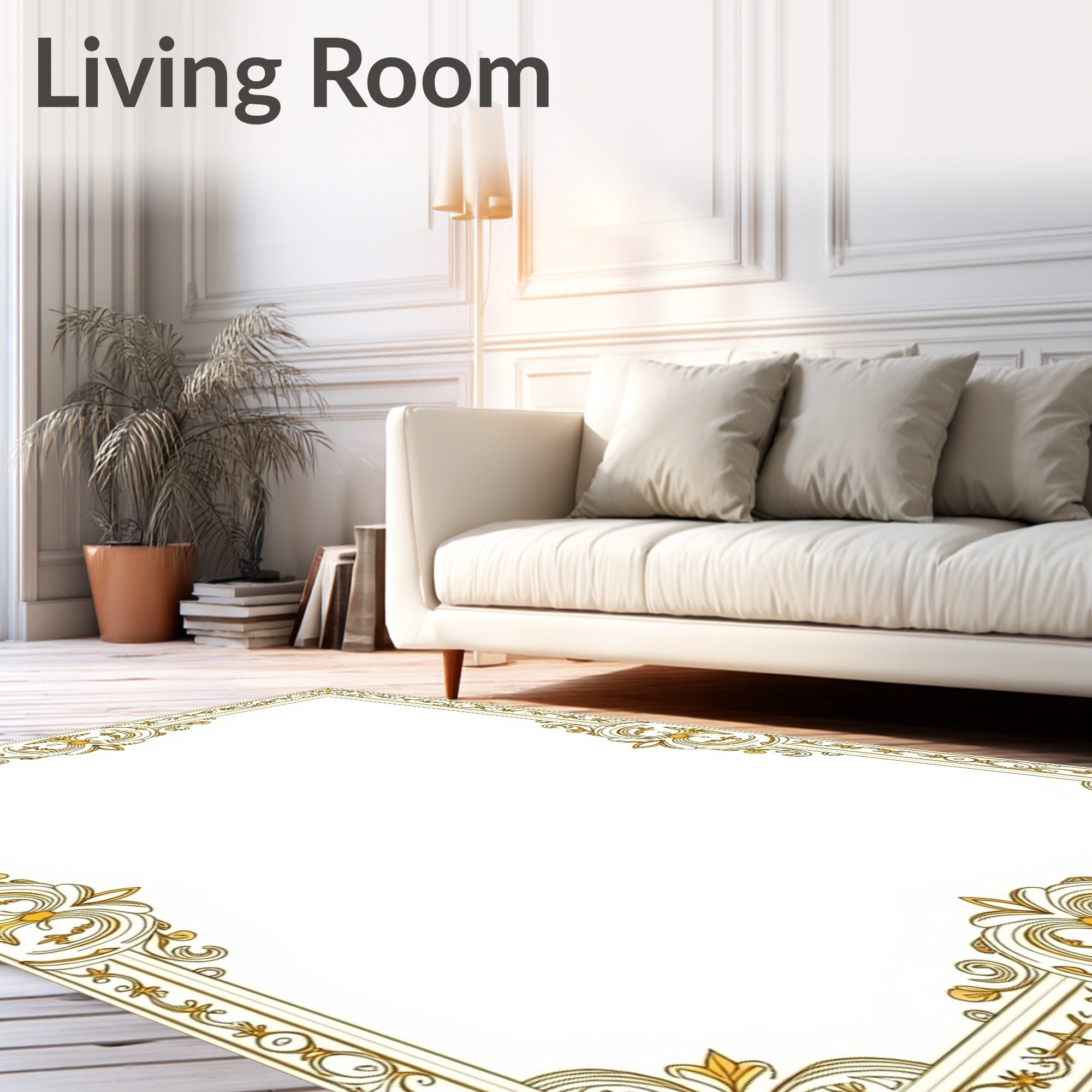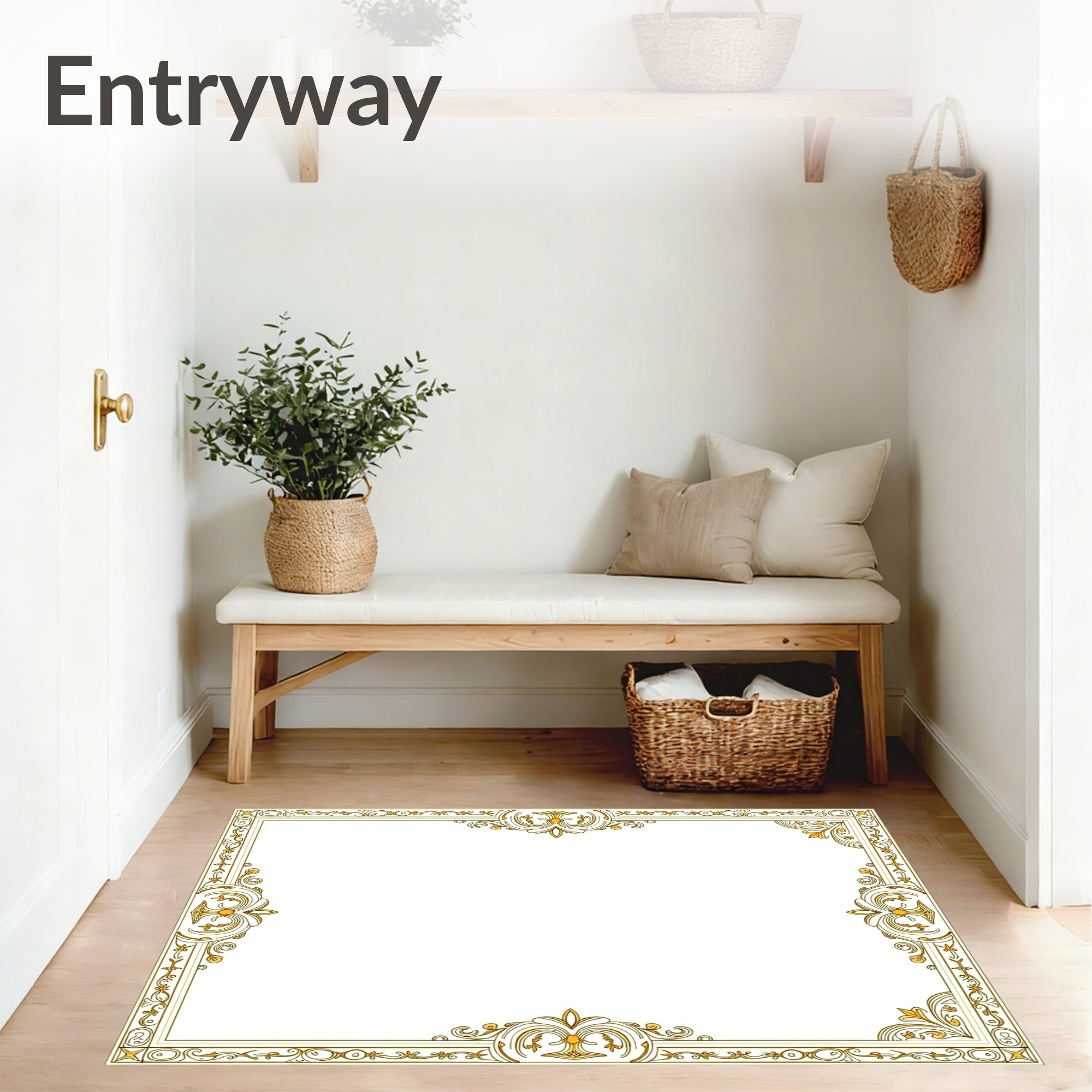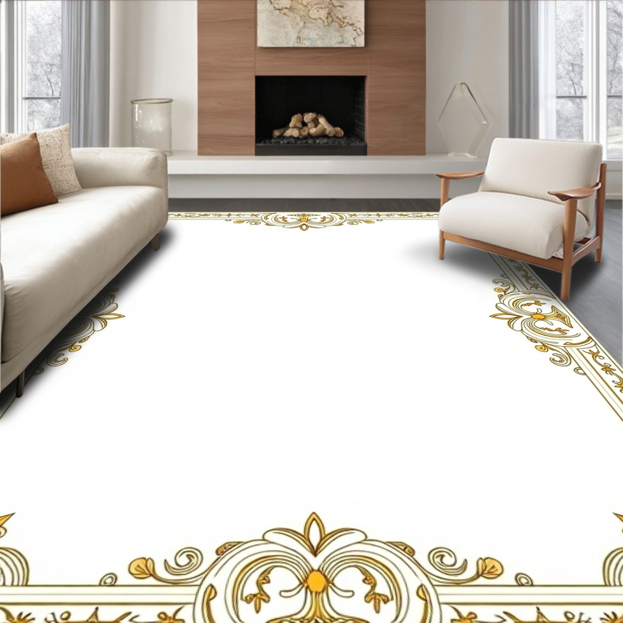 Flatwoven High Traffic Area Rug, Interlocking Floral Medallion with Subtle Baroque, Non Slip, Stain Resistant, Washable Area Rugs for Living Room, Bedroom (Gold) Overview: